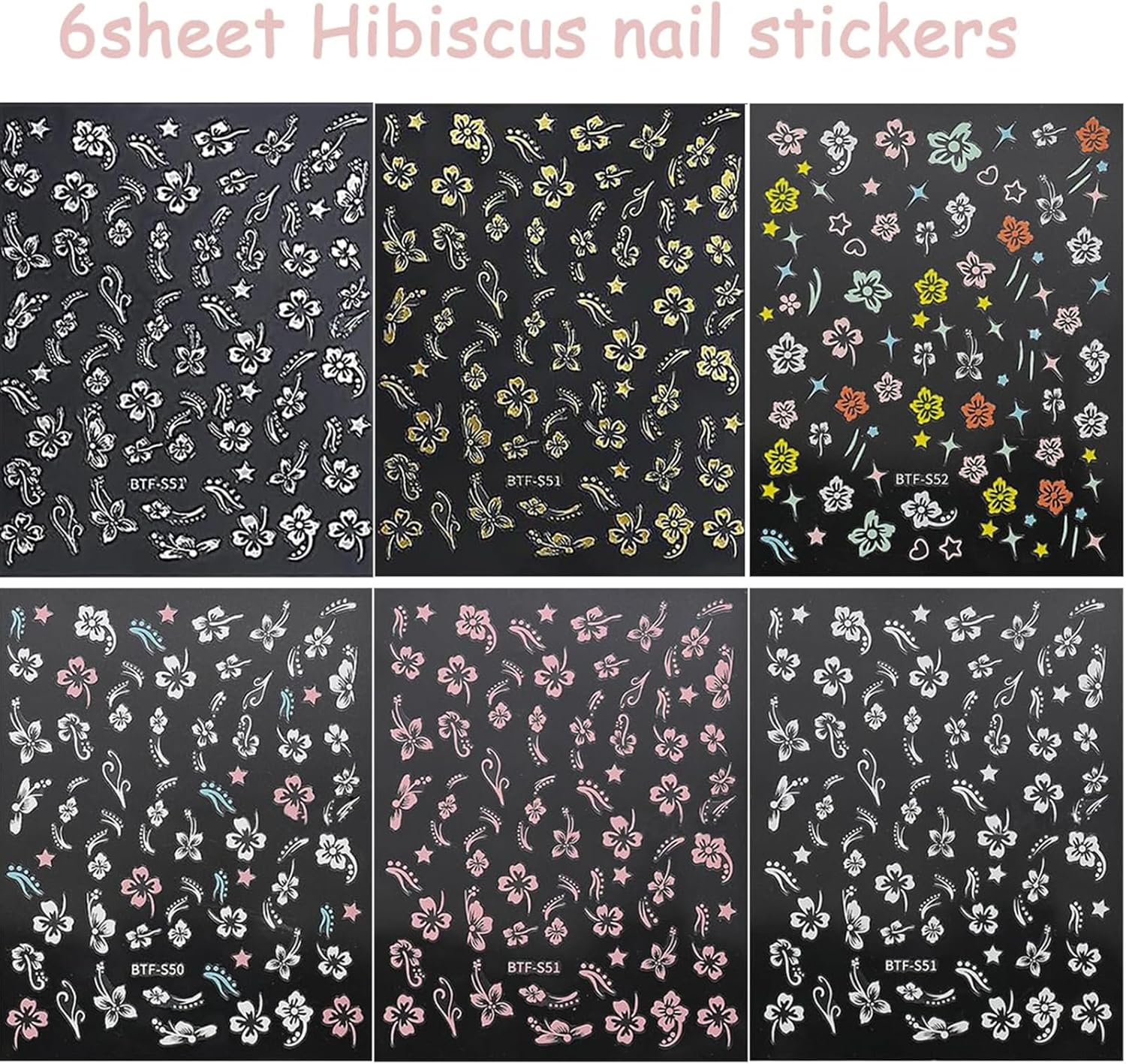 Nagelstickers voor nagelkunst: je ontvangt 6 vellen 3D hibiscusbloemen, nagelkunststickers, lentebloemen-nageldesigndecoratie, die je een verscheidenheid aan opties bieden om je rijke fantasie van doe-het-zelf nagels volledige speelruimte te geven.