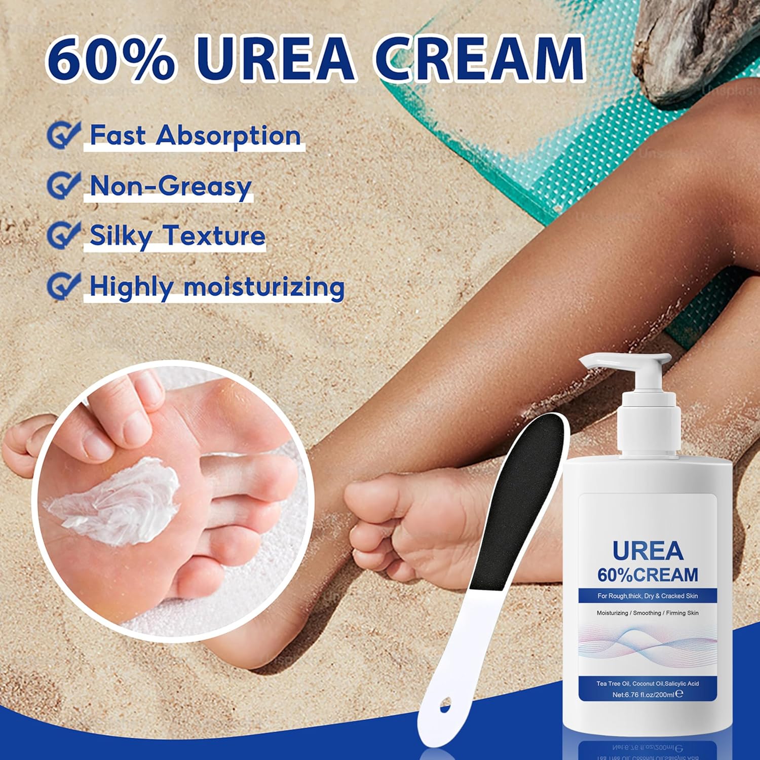 60% Urea Cream + 40% reparatiecrème voor voeten en handen, voetcrème voor gebarsten hielen en droge huid, maximale sterkte voor hand en voet, lichaamsverzorging, eeltverwijderaar, voetcrème met