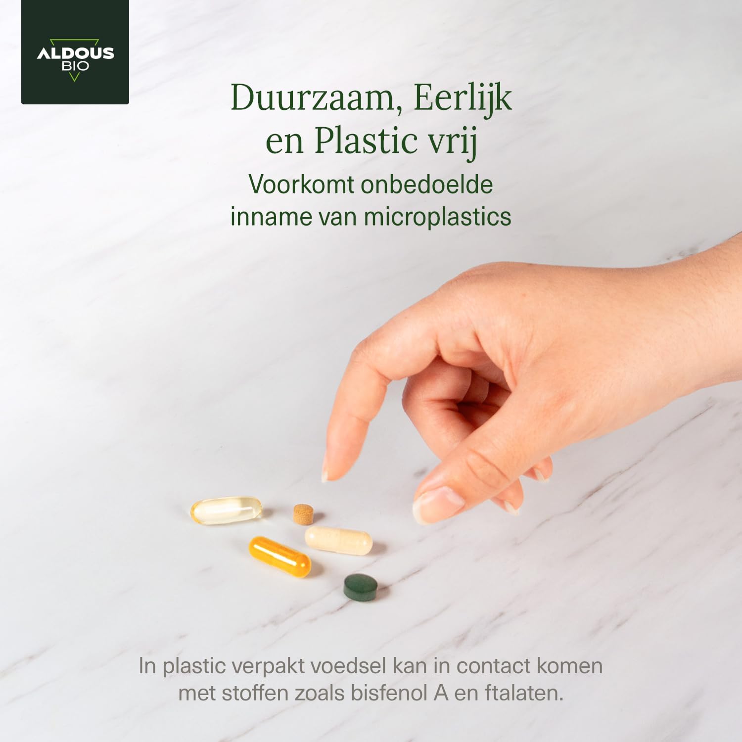 Aldous werd geboren met de missie om bewustzijn te creëren over de impact die plastic heeft op onze gezondheid. Vermijd onbedoelde inname van microplastics, vermijd producten die langdurig in contact komen met plastic. Jouw gezondheid is het belangrijkste.