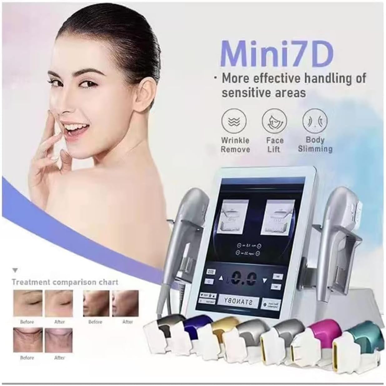 7d Hifu Huidverjongingsmachine Met 2 Handgrepen, Gezichtslifting Anti-Rimpel Lichaamsafslank Schoonheidsapparaat, Hoge Intensiteit Gericht, Veilig En Pijnloos, Met 7 Cartridges