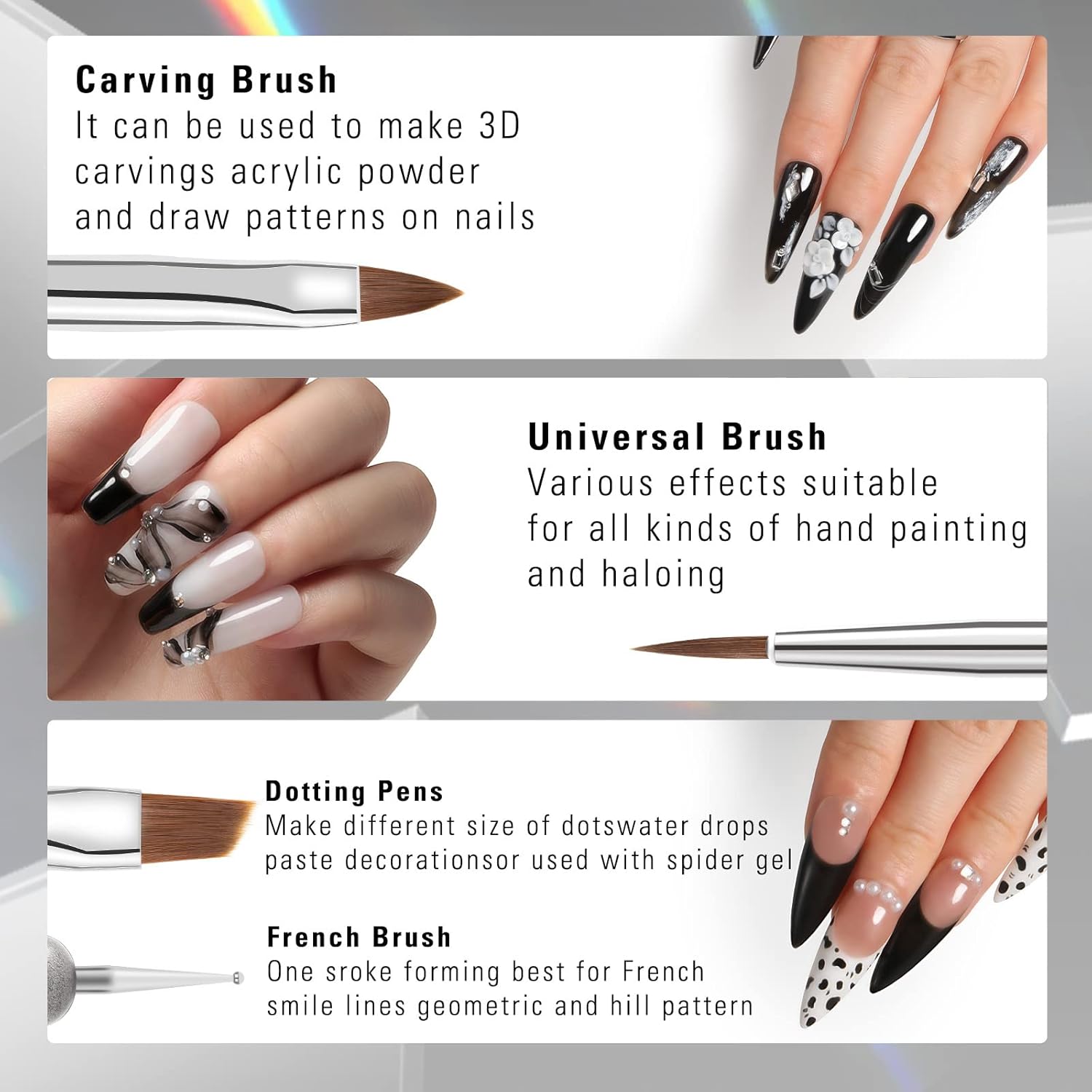 🥇【GESCHIKT VOOR IEDEREEN】 Het penseel is licht en comfortabel, gemakkelijk vast te houden en te schilderen Bij het lakken is het penseel zo zacht dat u met allerlei verbeeldingskracht mooie patronen op uw nagels kunt maken Maak uw nagels mooier en charmanter