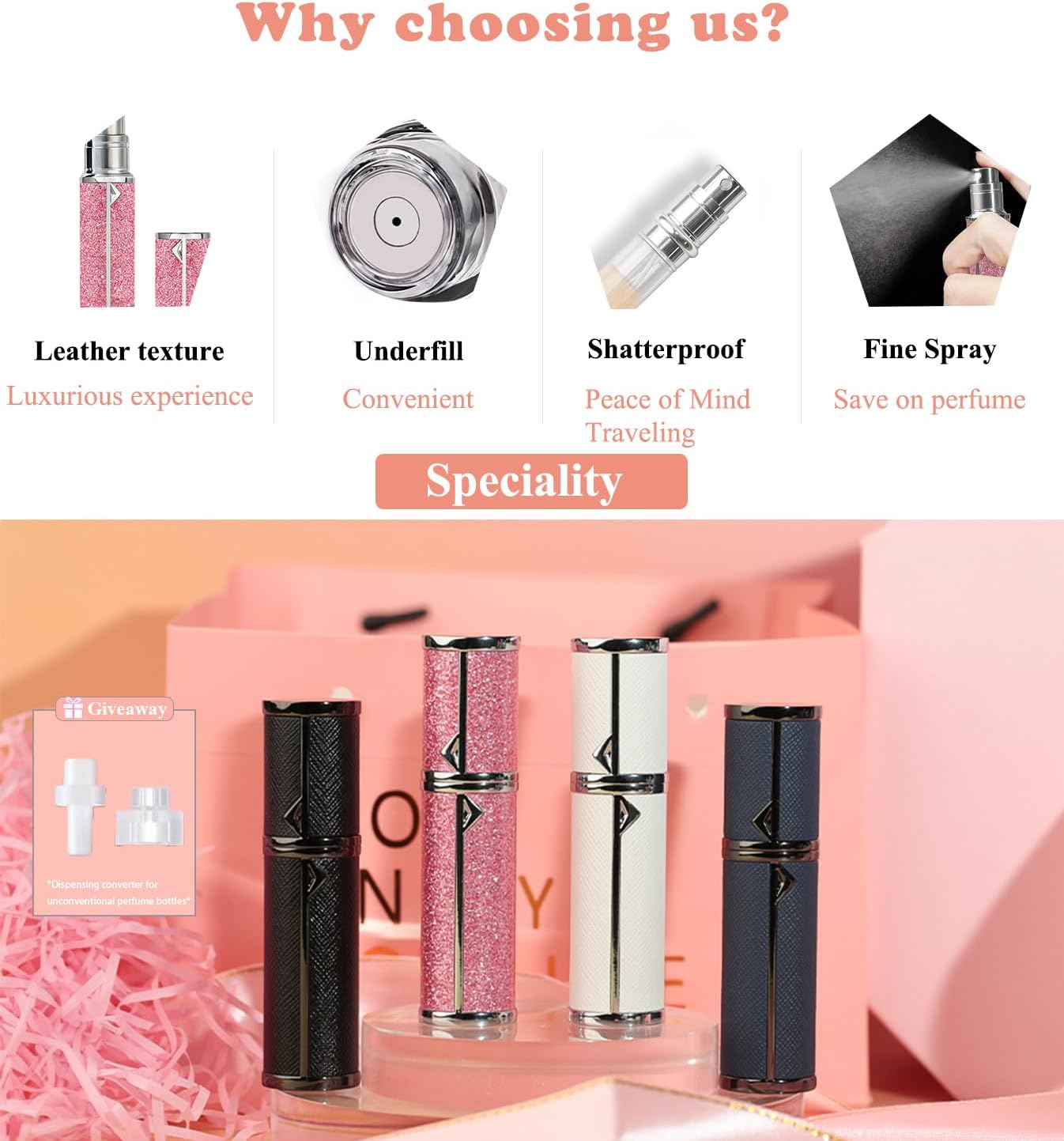 These portable refillable perfume bottles are stylish, well-made, and incredibly practical. With an easy, no-mess refill process, they’re perfect for travel or everyday use. Compact enough to fit in a pocket or bag, they’re great for on-the-go freshening up. The variety of pretty colors makes them ideal for gifting. Durable and functional, this is a must-have for anyone who loves convenience and elegance while traveling or out and about.