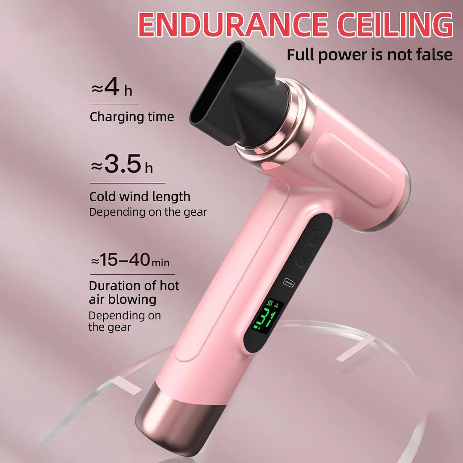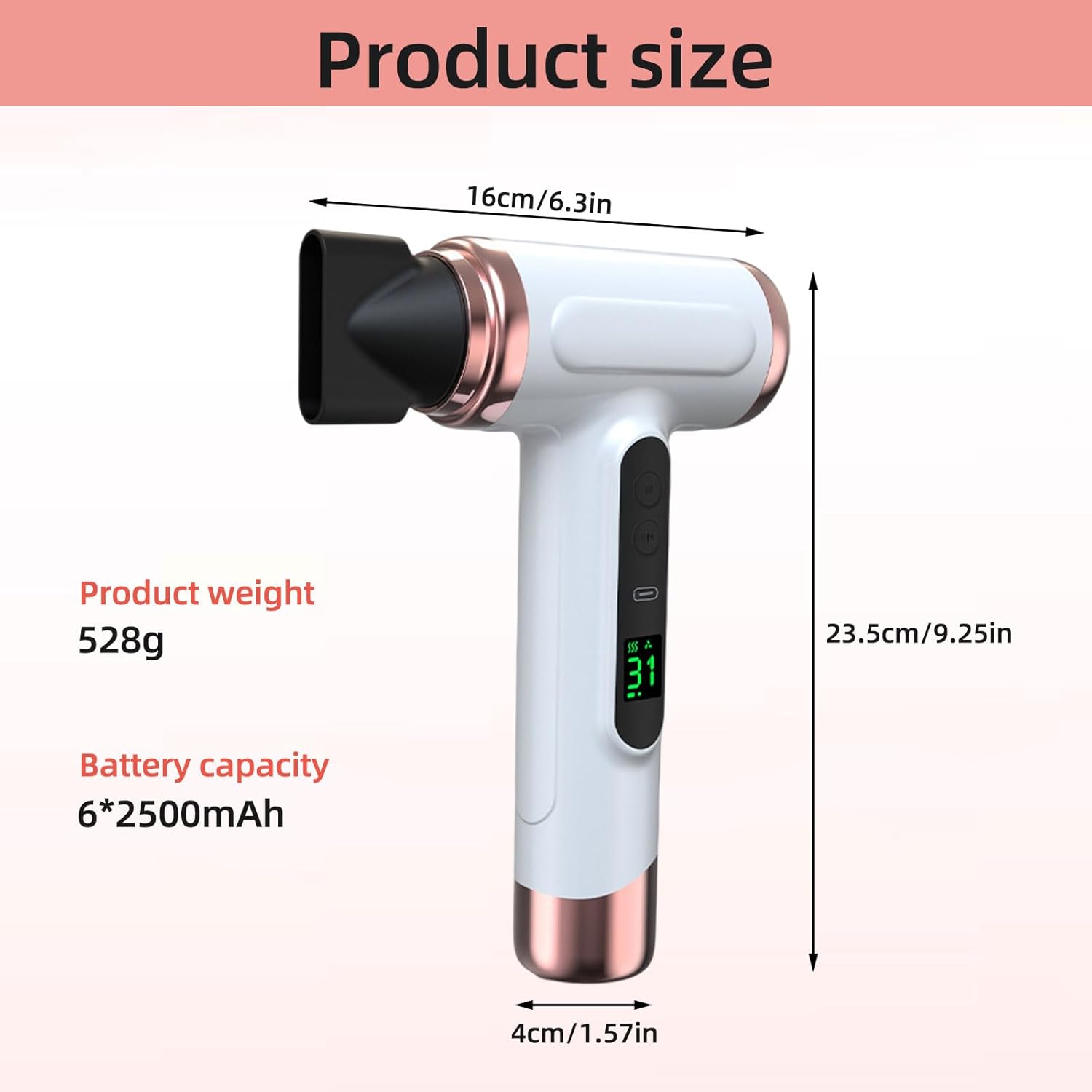 USB-oplaadbaar: de USB-oplaadbare haardroger is eenvoudig te gebruiken, zonder de stekker in het stopcontact te steken. De ingebouwde 15.000 mAh lithium-ion batterij levert langdurige energie voor een langer gebruik. Je kunt de haardroger altijd en overal gebruiken, zonder een stopcontact nodig te hebben.