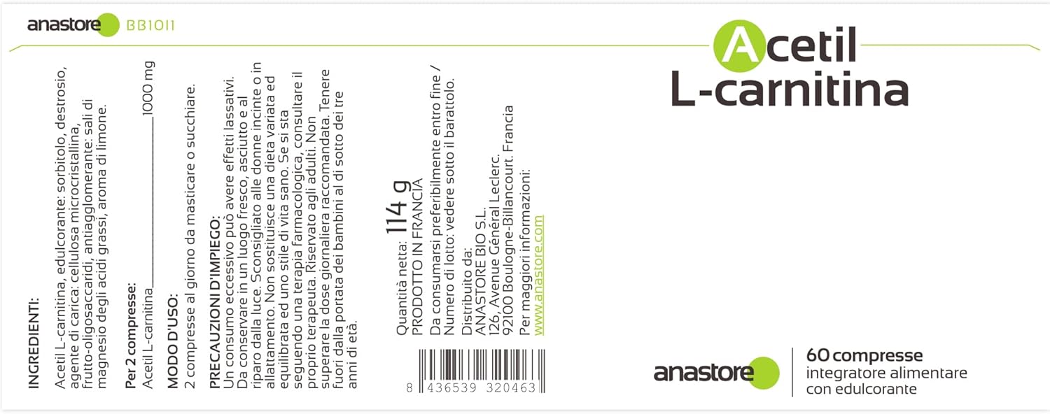 acetyl-L-carnitine *- 500 mg/60 tabletten * Gegarandeerde zuiverheid van 99%* * visuele stoornissen, diabetes, sportieve prestaties