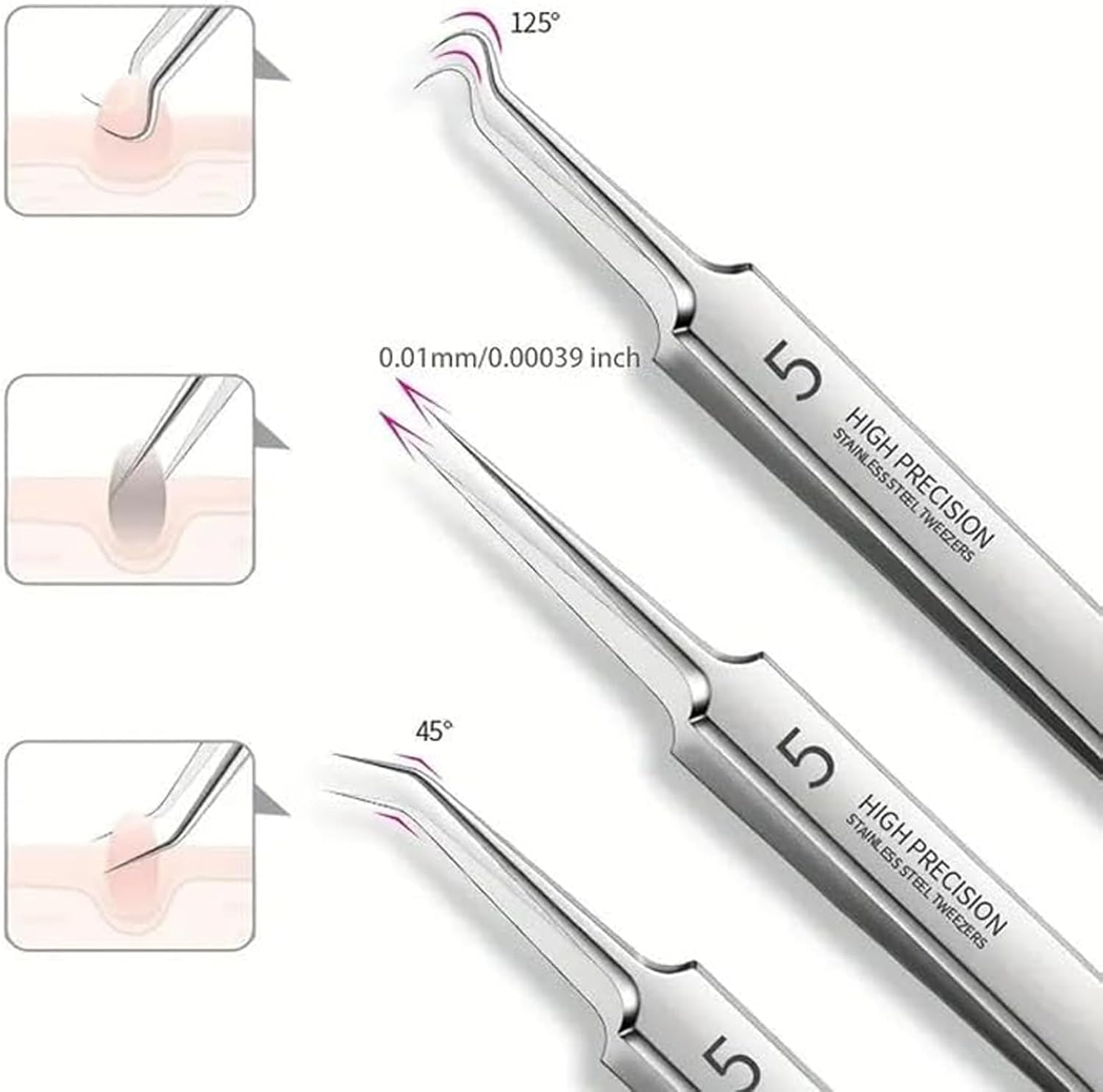 Ergonomic Grip: Acssart tweezers curved, serrated tips ensure a firm hold, while the blackhead tools offers a secure, comfortable grip