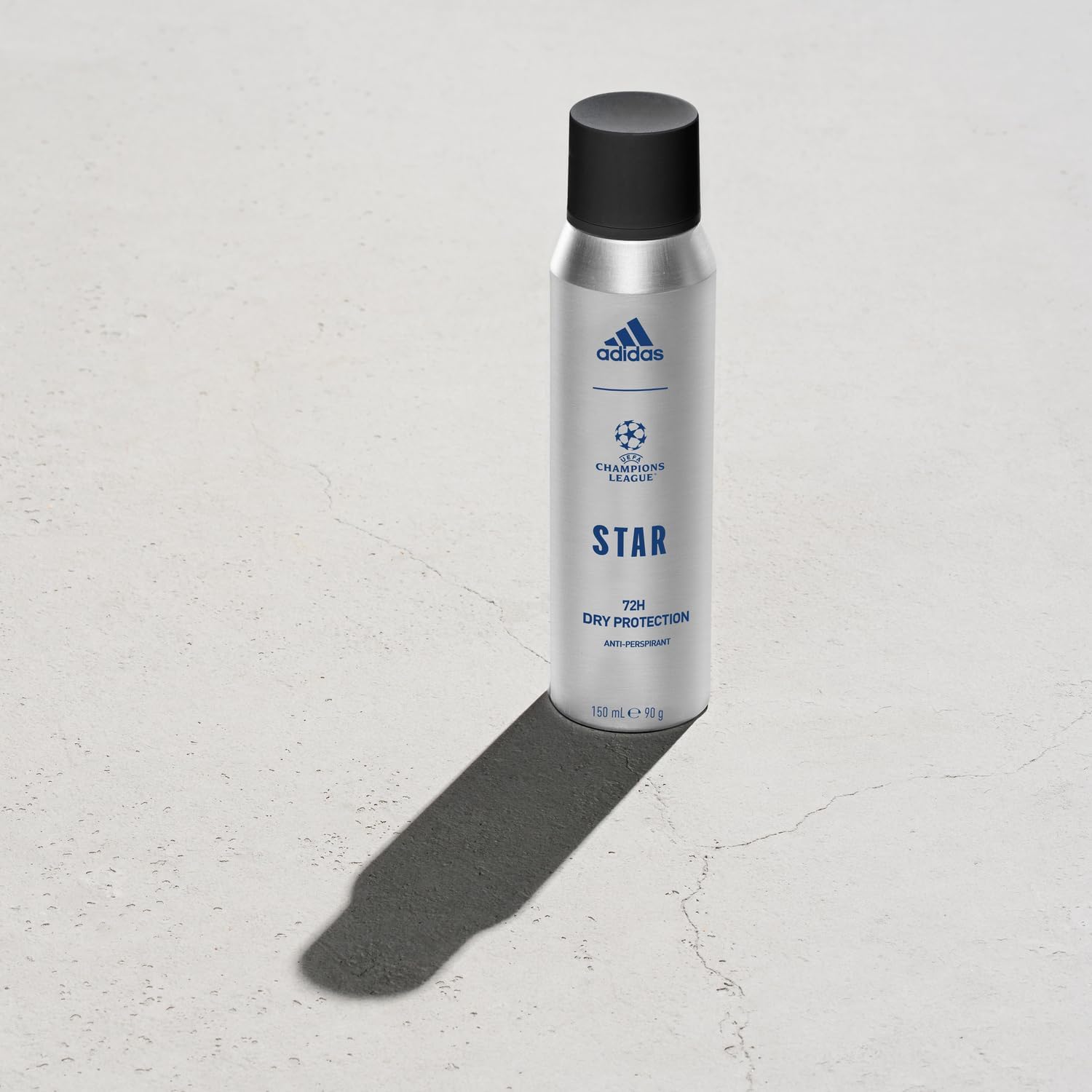 De adidas UEFA STAR Edition antitranspirant deodorantspray viert de meest memorabele voetbalmomenten met een aromatisch-frisse geurcompositie.