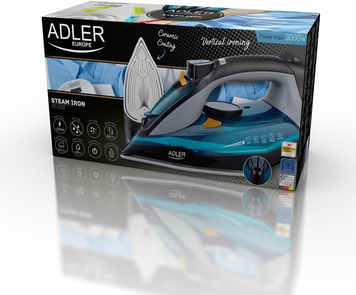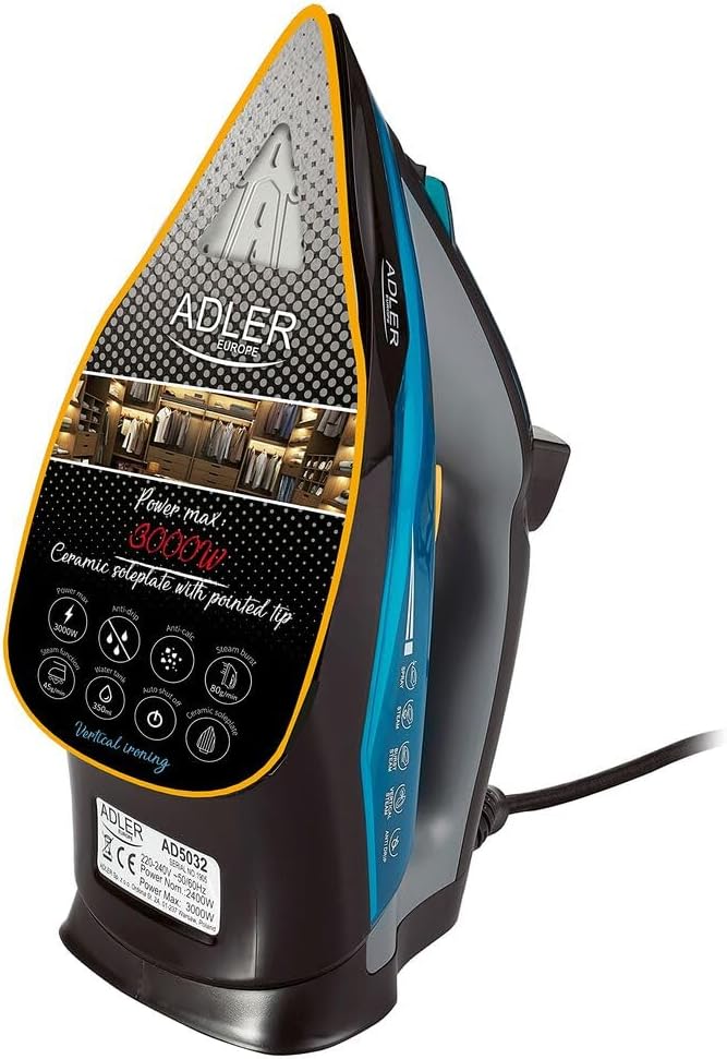 Het Adler stoomstrijkijzer is het perfecte apparaat voor iedereen die van efficiënt, veilig en comfortabel strijken houdt. Met een maximaal vermogen van 3000 W en vijf strijkfuncties, waaronder verticale stoom, stoomstoot en droog strijken, biedt het ongeëvenaarde prestaties.