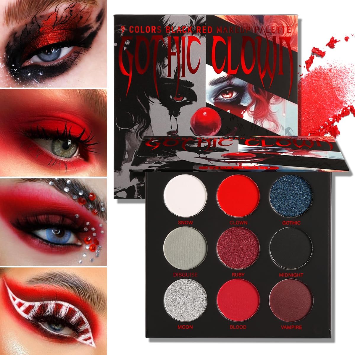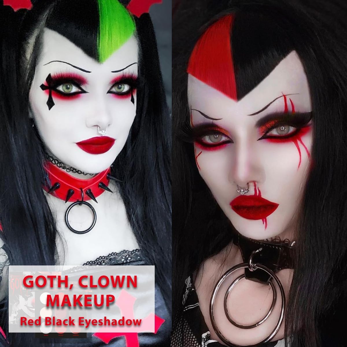 Afflano Rode oogschaduw-palet, Halloween, gothic, clown, make-up, glitter, metallic, rood, zwart, wit, zilver, oogschaduw, hoog gepigmenteerd, rode ogen, joker, zombie, vampier, skelet, podium,