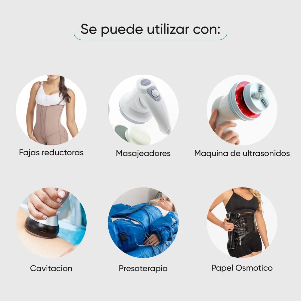 ➡️ REAFFIRMING CREAM COMPATIBLE WITH ALL TYPES OF TREATMENTS Ideaal voor versteviging en afslanking, volledig compatibel met anti-cellulitis massagers, houttherapie, patches, radiofrequentie, pressotherapie, roller, drainerende verbanden, anti-cellulitis cupping, cavitatie, mesotherapie, vacuümtherapie en ultrasone machines.