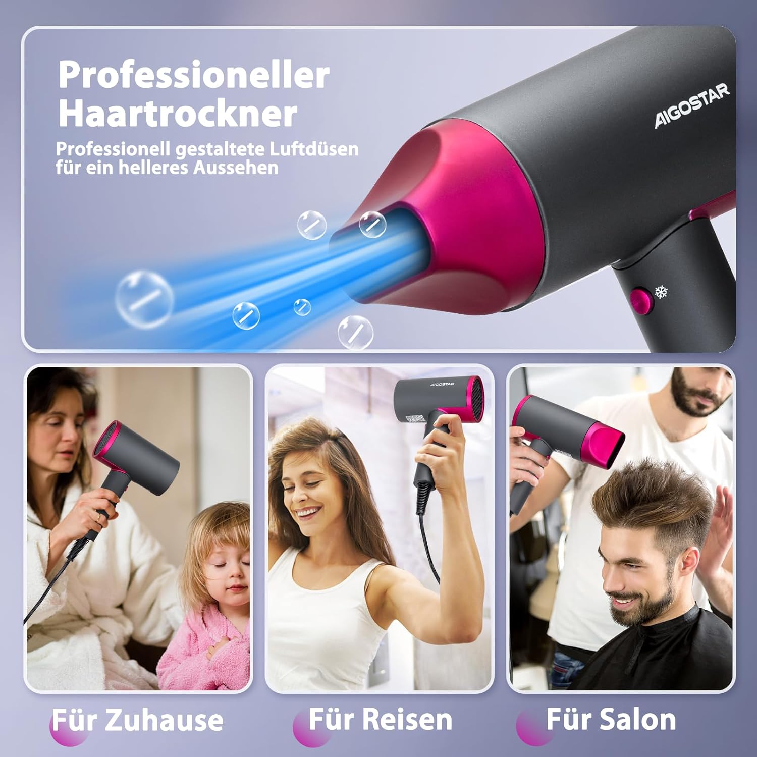 Multifunctioneel: gebruik de Aigostar professionele haardroger thuis in de sportschool of neem hem mee op reis, het compacte en lichtgewicht ontwerp maakt het mogelijk om waar je wilt, comfortabel en neemt weinig ruimte in beslag en is gemakkelijk te gebruiken.