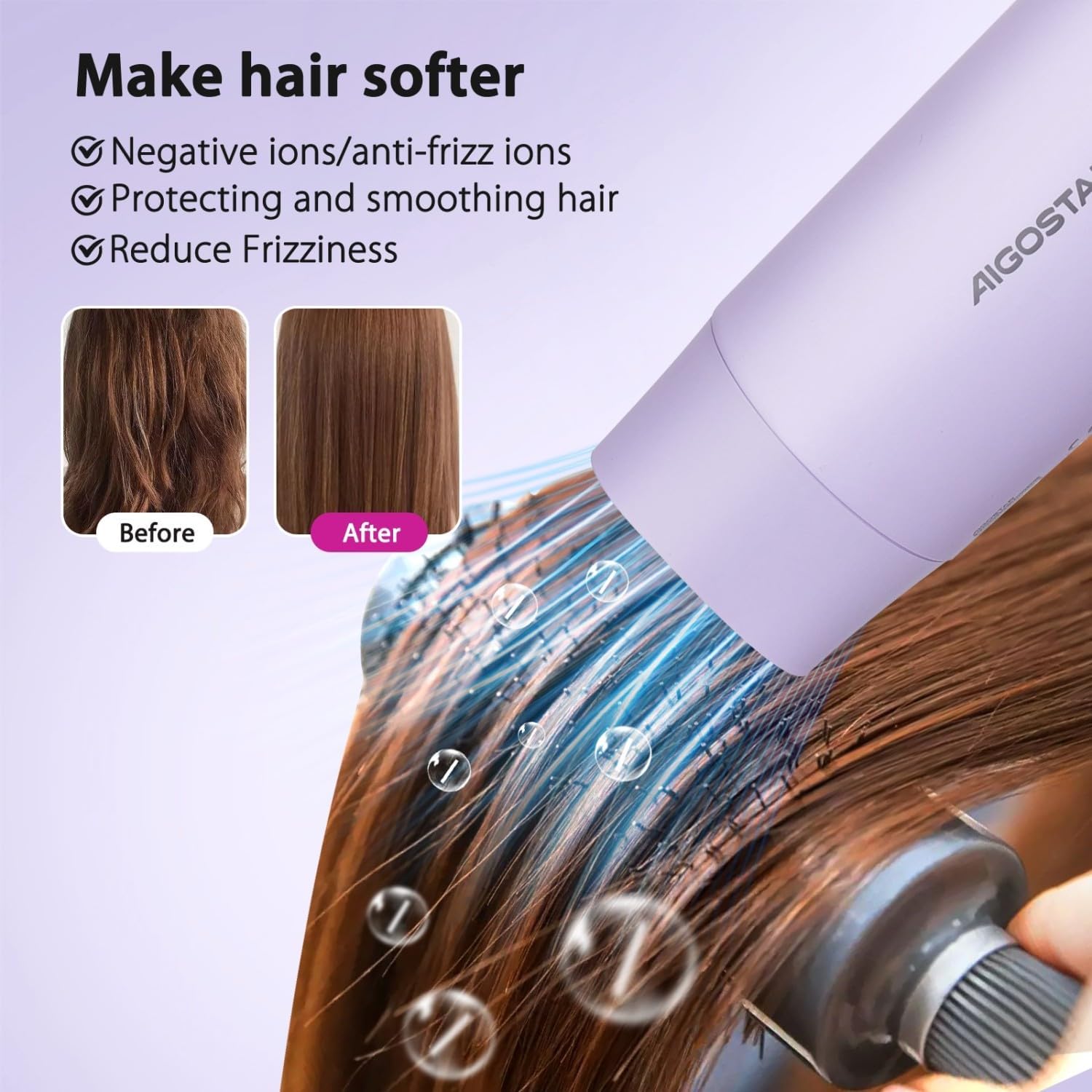 Aigostar Haardroger voor op reis, ionentechnologie, 2100 W, 3 temperatuur/2 snelheden, bescherming tegen verbranding, violet met opbergtas