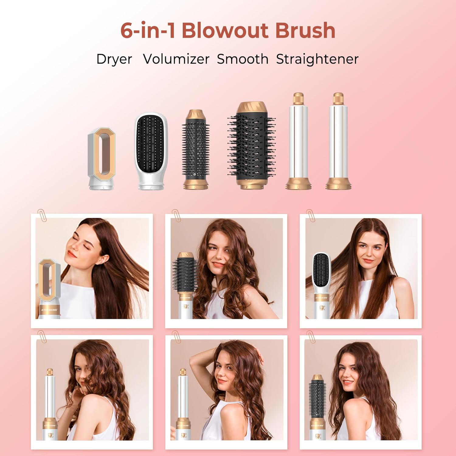 【Magic Twist Hair Air Styler 6-in-1】: deze 6-in-1 airstyler set bevat 1 föhn, 1 stijlborstel, 2 luchtkruller, 1 blaasborstel en 1 massageverwarmingsborstel. Meerdere functies zijn gecombineerd in een geweldige praktische kappersset, zodat je verschillende mooie kapsels effectief en bespaart tijd.
