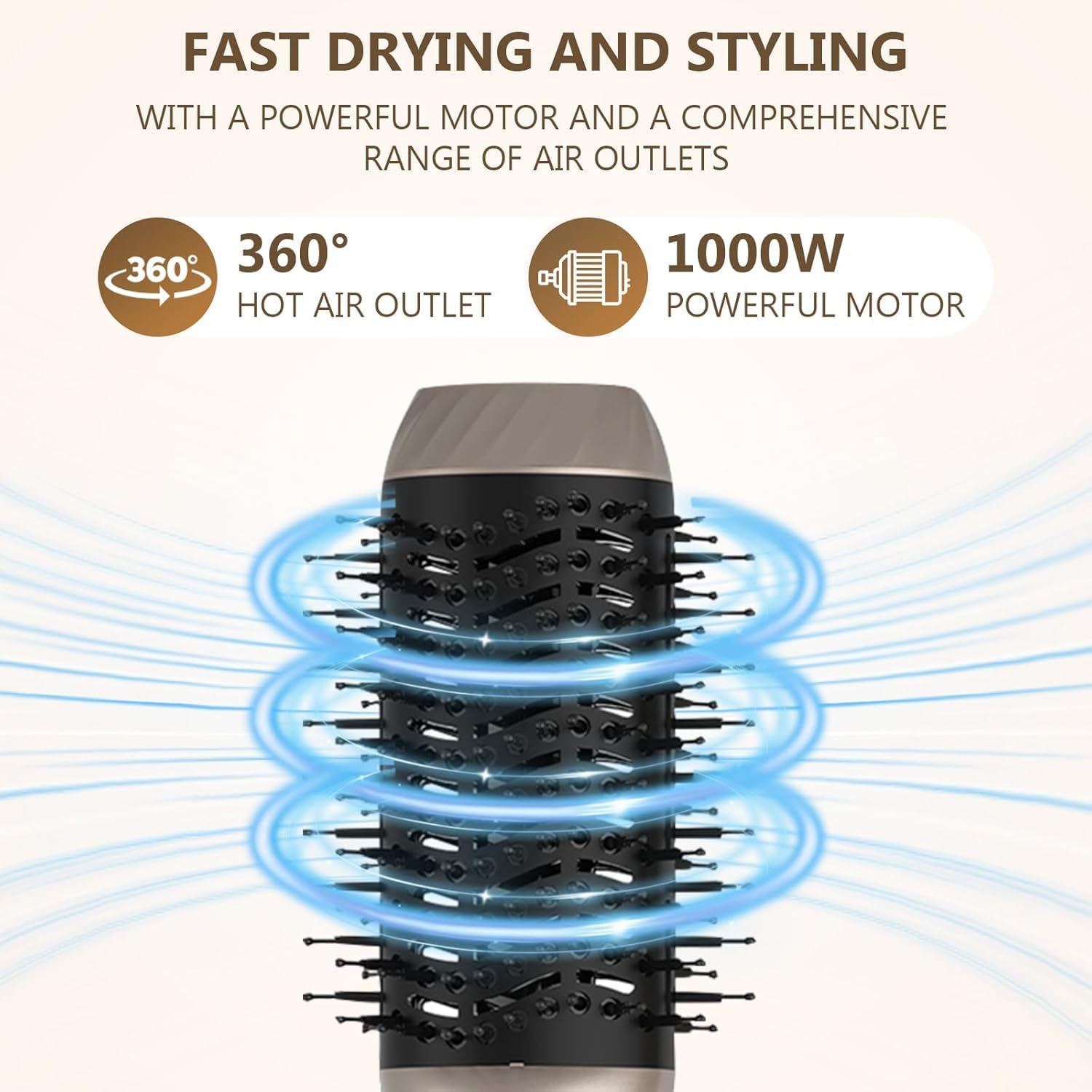 Air Styler All-in-One: ronde borstelhaardroger produceert volumineuze, gladde, natuurlijk uitziende krullen zonder overmatige hitte, 2 x 32 mm cilinder voor losse en stevige krullen, wordt geleverd met 6 verwisselbare borstelopzetstukken die het föhnen en gladmaken vergemakkelijken. Het is een fluitje van een cent om je hoofdhuid te krullen, volume te geven en te masseren