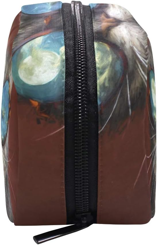 AJINGA Kitten kat ogen schattig grijs cosmetische tas rits toilettas dames vierkante make-up borstels tas