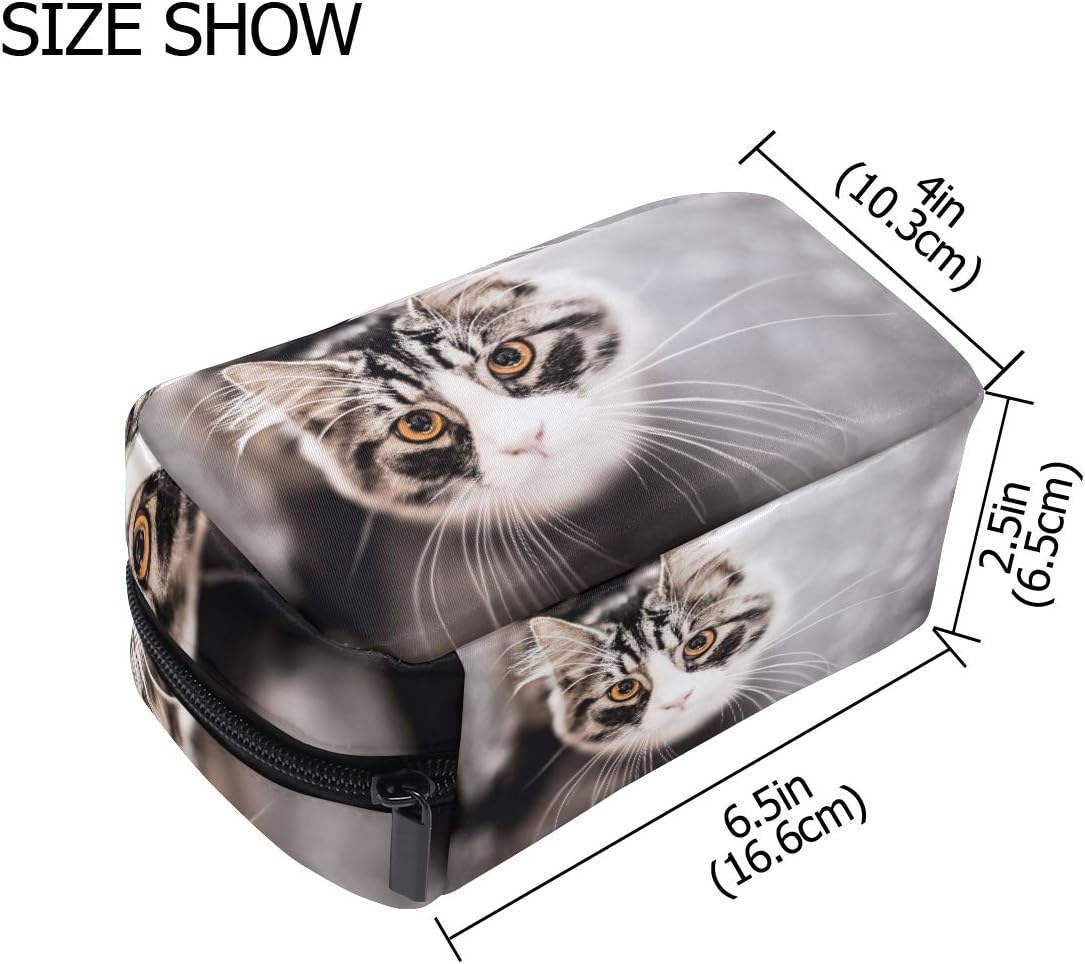 AJINGA Kitten kat ogen schattig grijs cosmetische tas rits toilettas dames vierkante make-up borstels tas