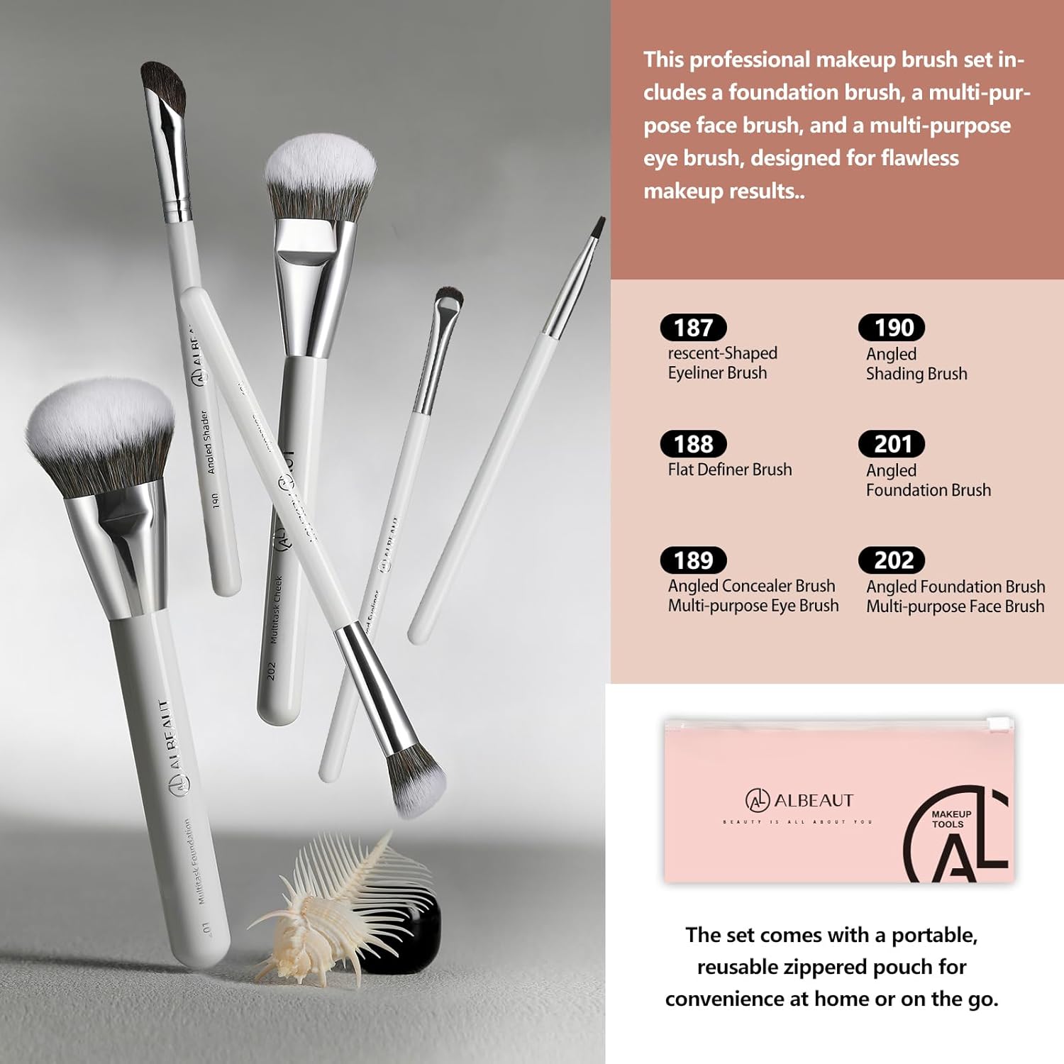 Deze Albeaut Face Brush Set bevat een foundationborstel, multifunctionele gezichtsborstel, concealer voor onder de ogen, eyeliner en wenkbrauwborstel, neuscontourborstel om aan al je dagelijkse make-upbehoeften te voldoen