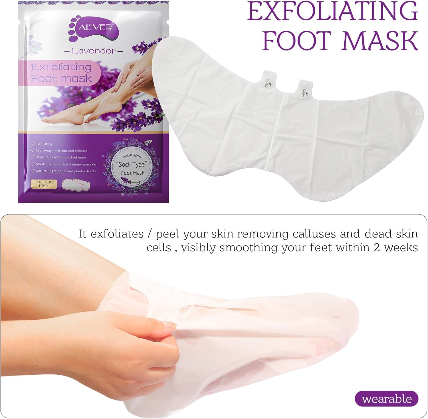 5 reviews for ALIVER 3 paar voet hydraterende masker, natuurlijke lavendel exfoliërende voet schil masker, voet huid reparatie sokken voor droog, veroudering, gebarsten hielen intense huid voeding voetcrème masker
