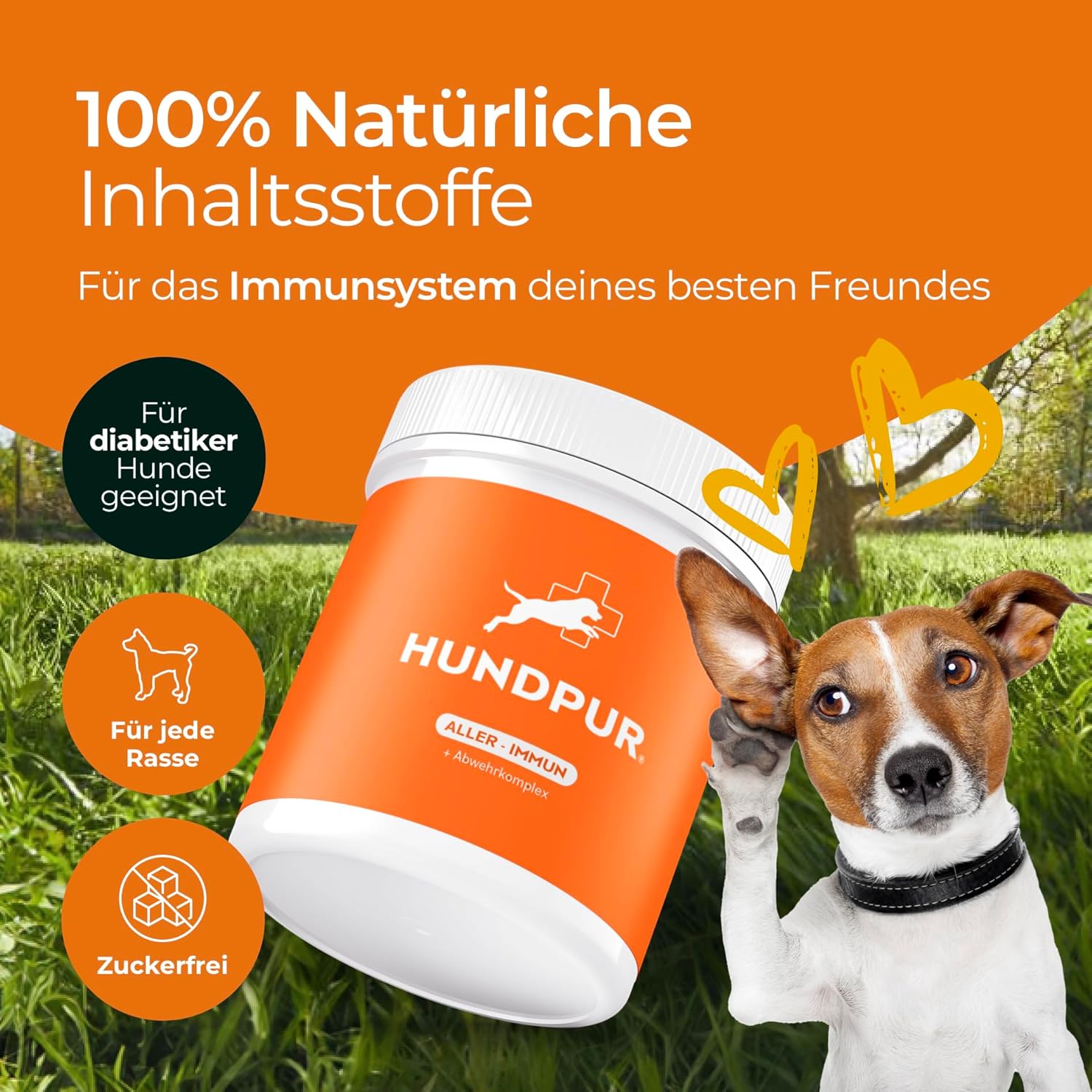 Ondersteuning van het immuunsysteem: Hundpur Aller-immuunsysteem kan voedingsgerelateerde tekortkomingen tegengaan en de afweer van je hond stimuleren