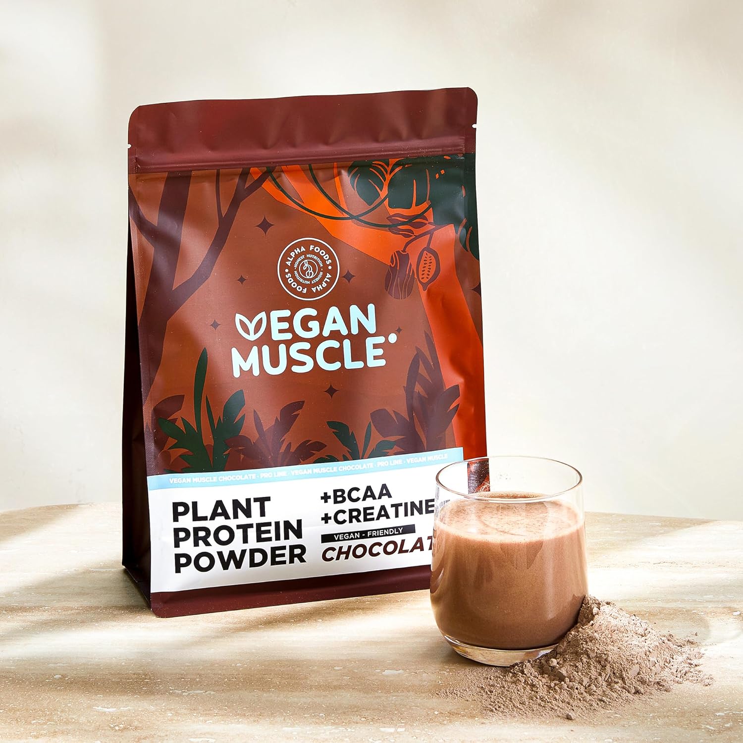 Alpha Foods Vegan Muscle Proteine poeder met Creatine en BCAA – Eiwitpoeder als maaltijd of ontbijtshake – Plantaardige Proteine Shake van gekiemde zaden – 600 gram voor 15 shakes met Chocolade smaak