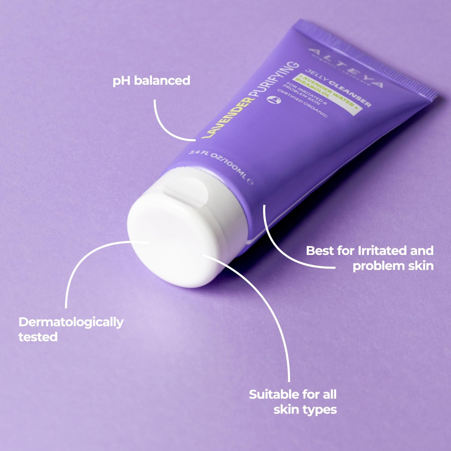 Alteya Organic Lavender Purifying Jelly Cleanser – Lavender Water and Bisabolol – NaTRUE Certified Organic – 100ml