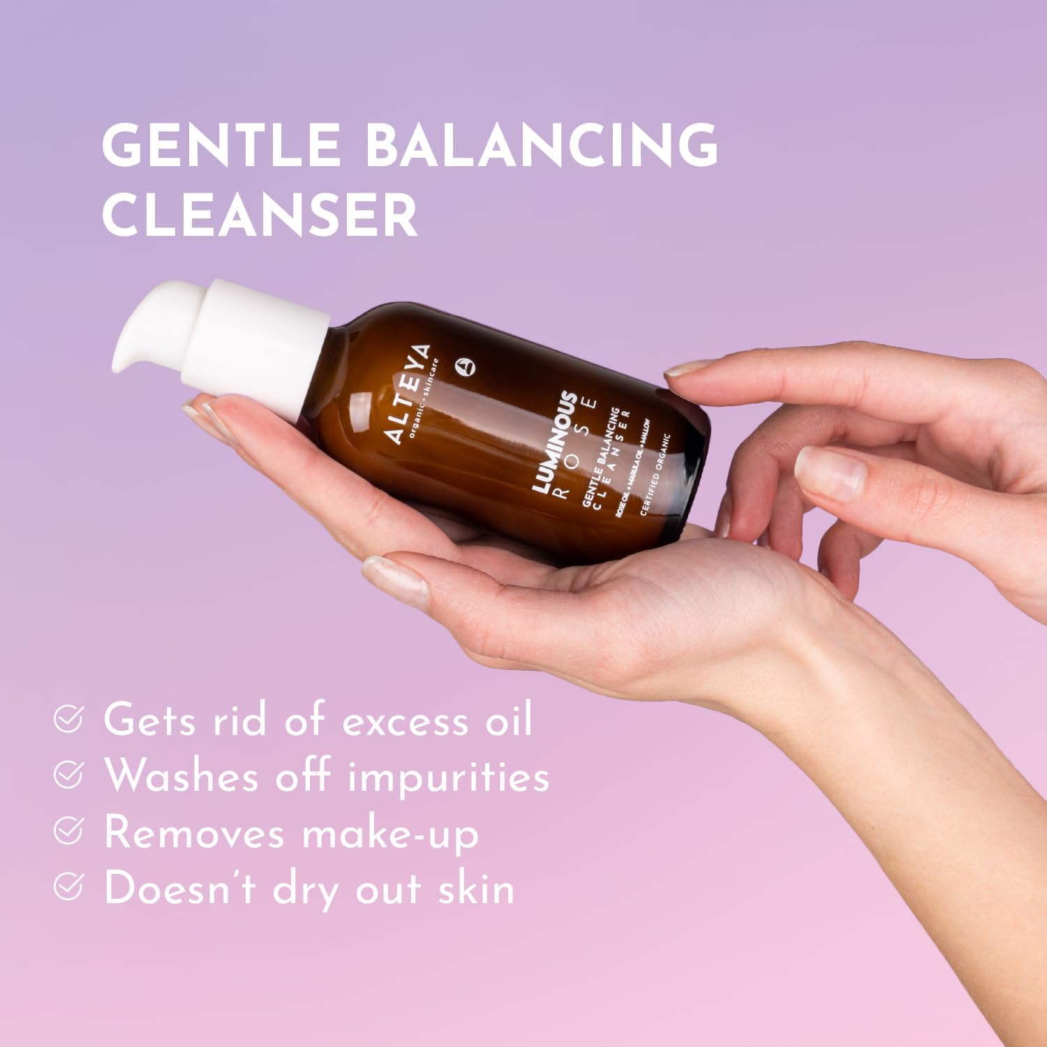 Alteya Organics Luminous Rose Zachte Evenwichtige Reiniger 120 ml – NaTrue gecertificeerde biologische 100% puur natuurlijke huidverzorging