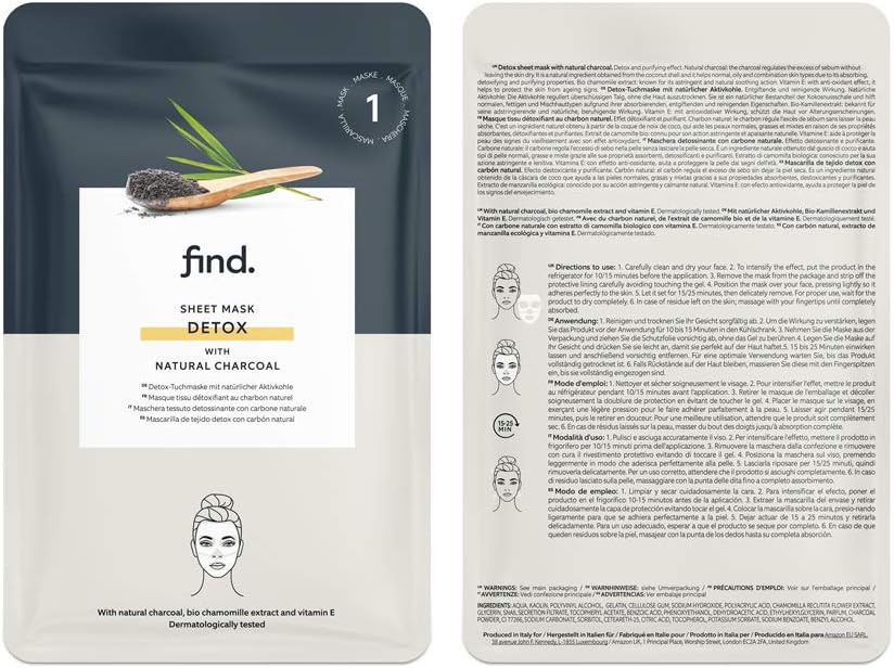 Amazon-merk: find. Sheet-maskerset voor uitgebreide gezichtsbehandeling, 10 stuks (2 x anti-stress, 2 x zuiverend, 2 x rustgevend, 2 x oplichtend, 2 x ontgiftend)