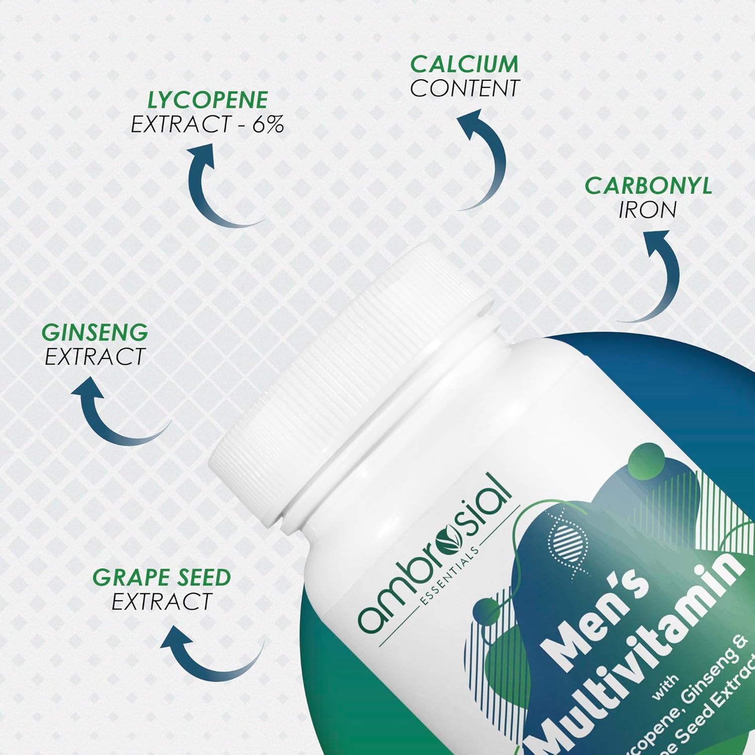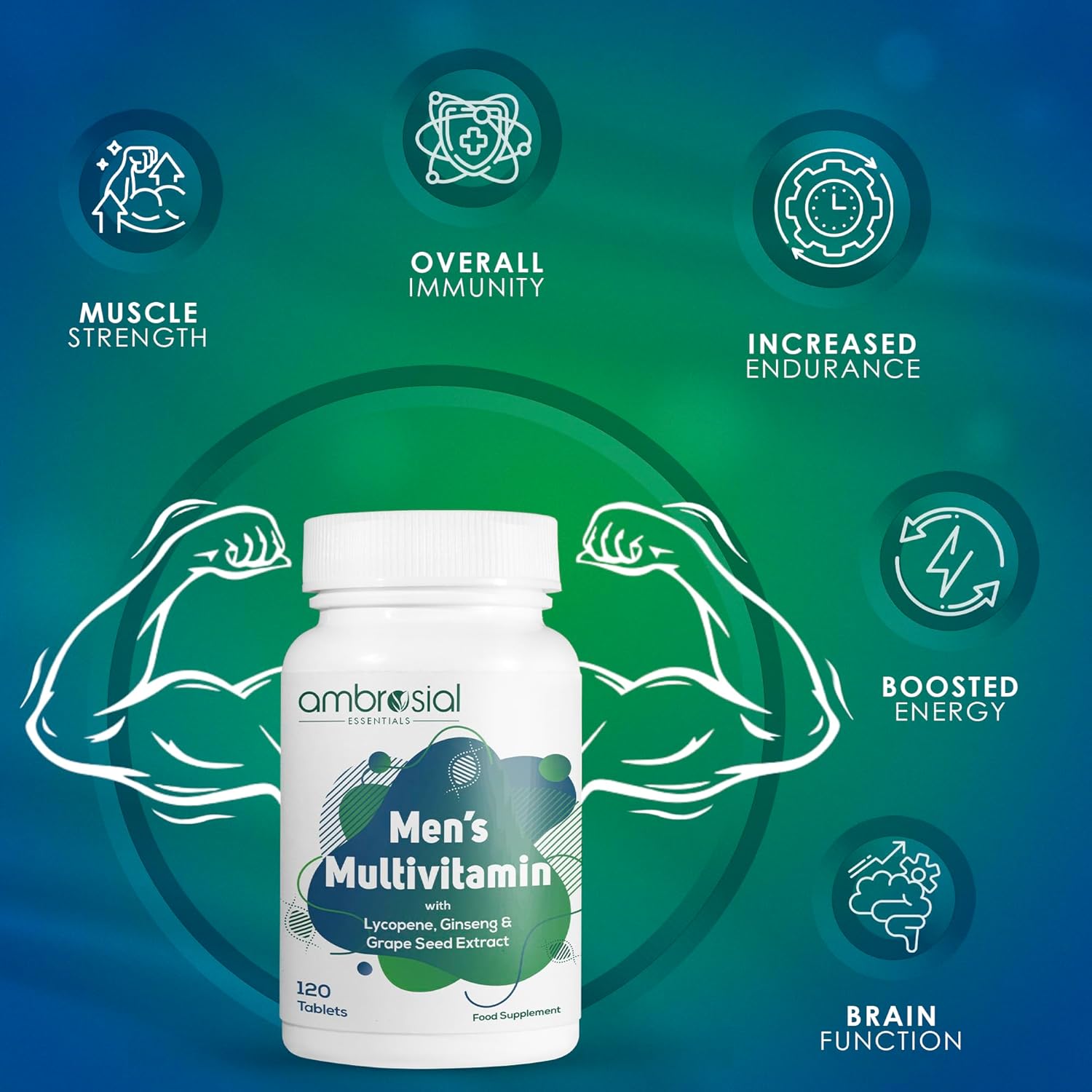 Ambrosial Multivitaminepreparaat voor mannen met lycopeen, ginseng en druivenpitextract, ondersteunt spierkracht, immuniteit, energie en uithoudingsvermogen, 120 tabletten