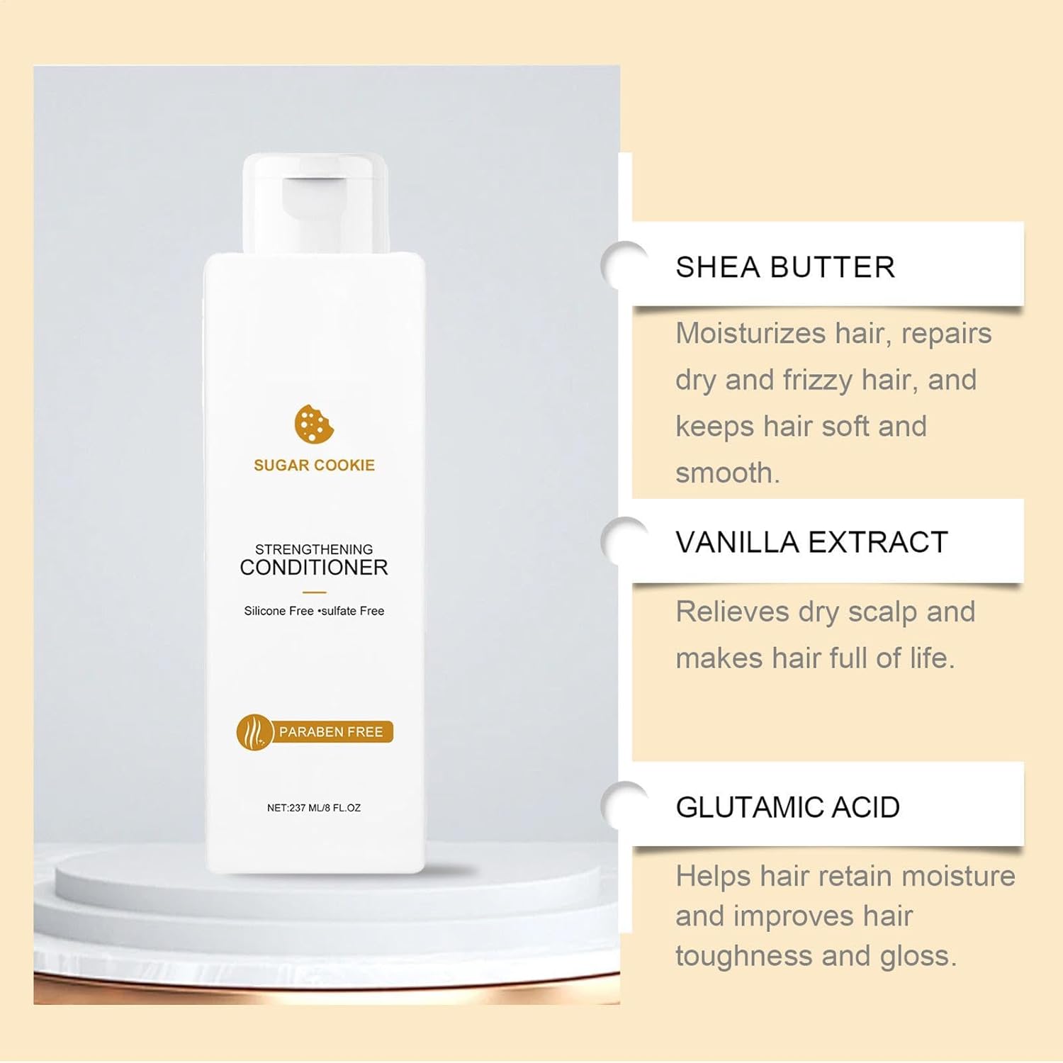 Our Strengthening Conditioner makes your hair healthier, smoother, and shinier. Say goodbye to frizziness! Enjoy the sweet scent of sugar cookies all day long. Perfect for festivals and events.