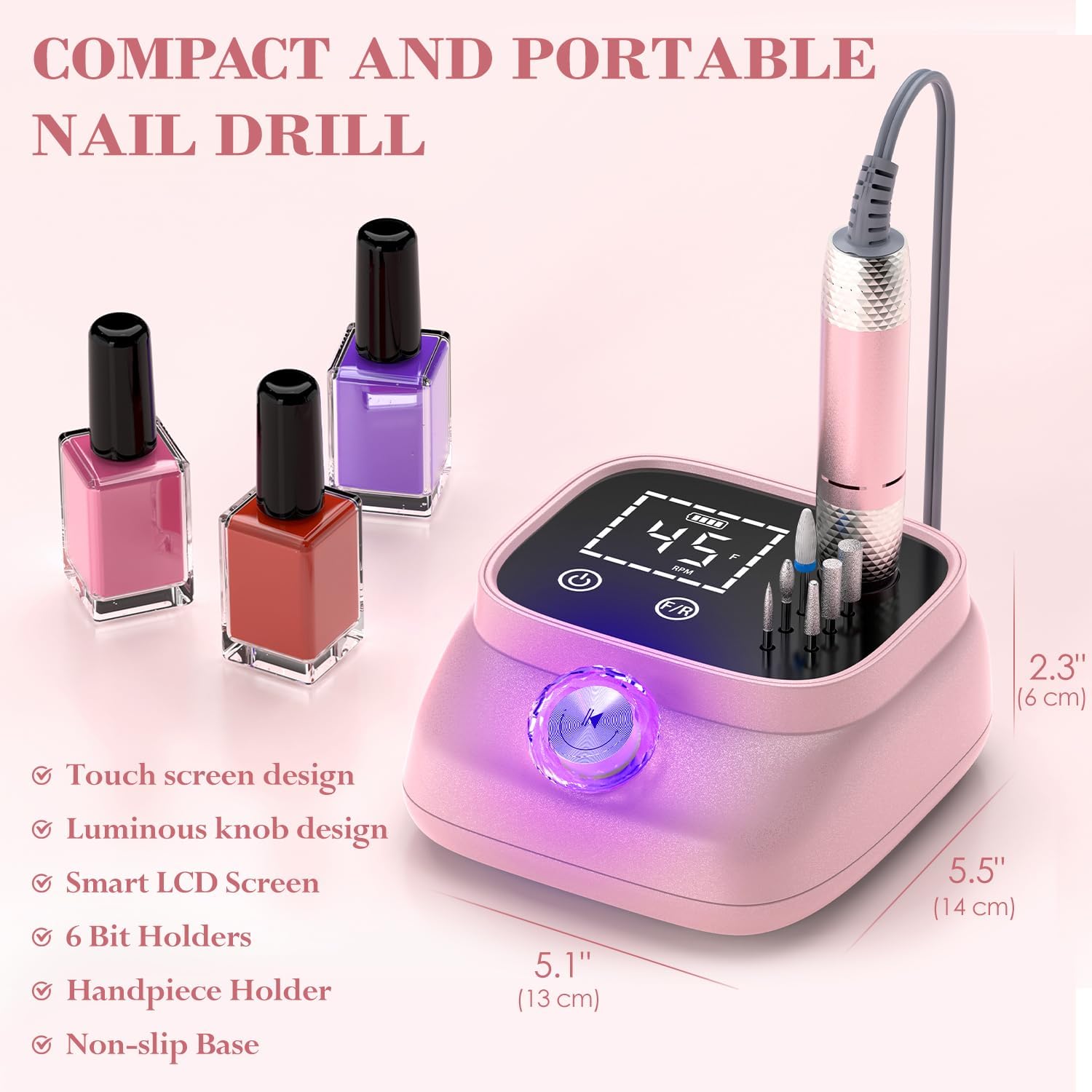 ANBEISTEE Professionele 45000 RPM Elektrische Nagelbor, Draagbare Nagel File Kit voor elke Manicure, Pedicure, Acryl Nagels Gel Polijsten Verwijderen, Ontworpen voor Salon, Huis, Gift Giving, Roze