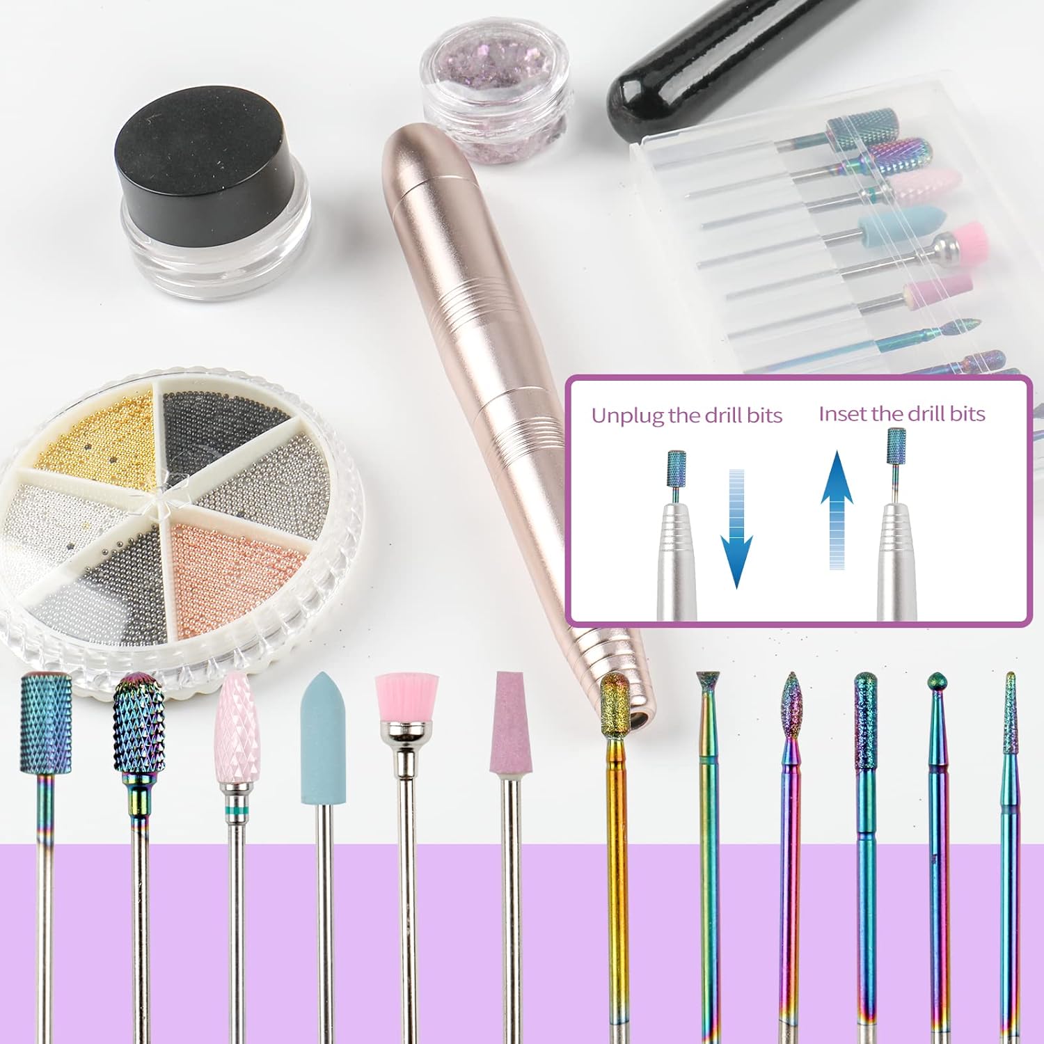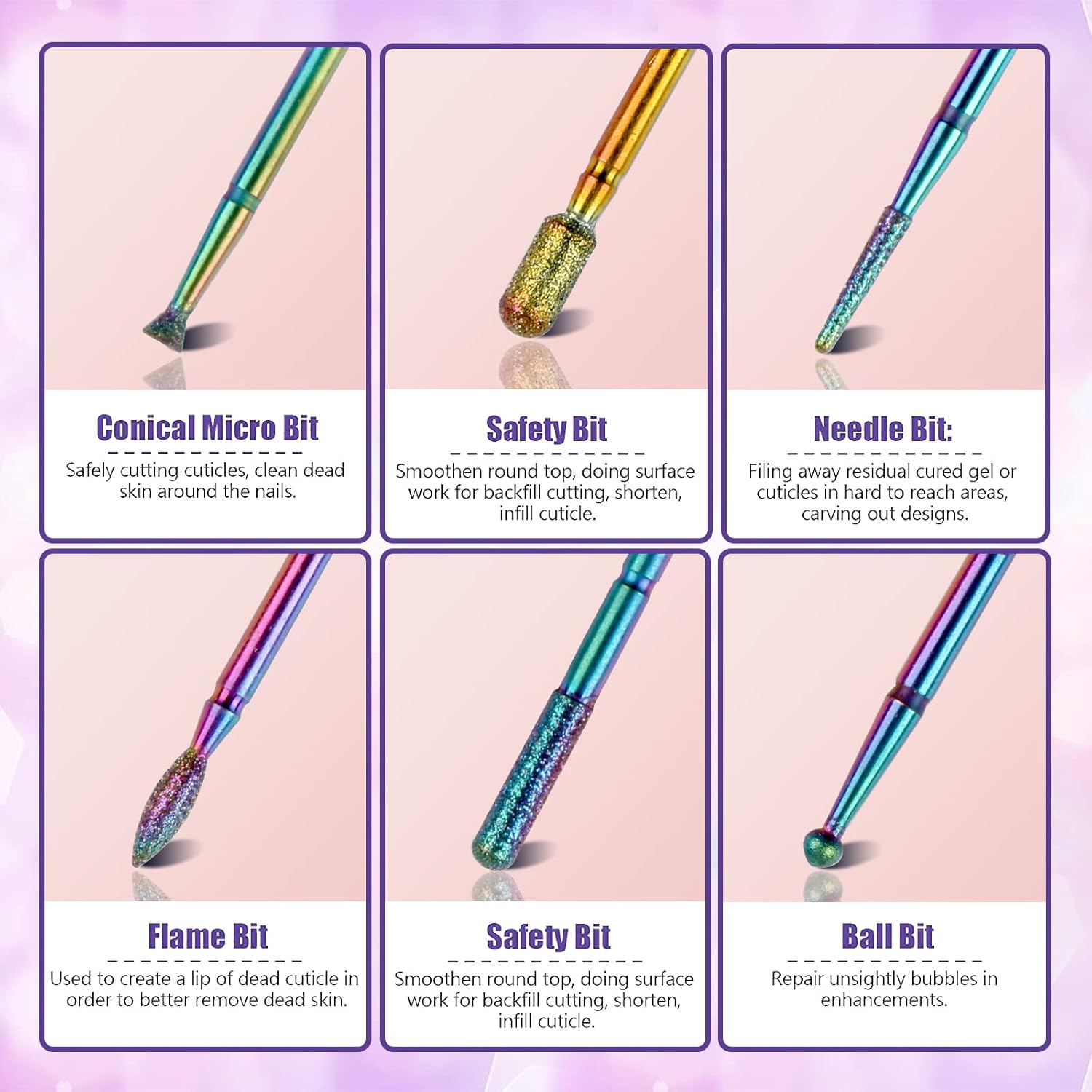The set includes a variety of bits, perfect for tackling different tasks like cuticle work, shaping, and grinding. Each bit fits well with my nail drill and performs efficiently, providing professional-quality results. The durability of the bits is impressive, and they make the whole process much faster and easier. This set is ideal for both beginners and more experienced users, offering excellent value and versatility for all your nail care needs.