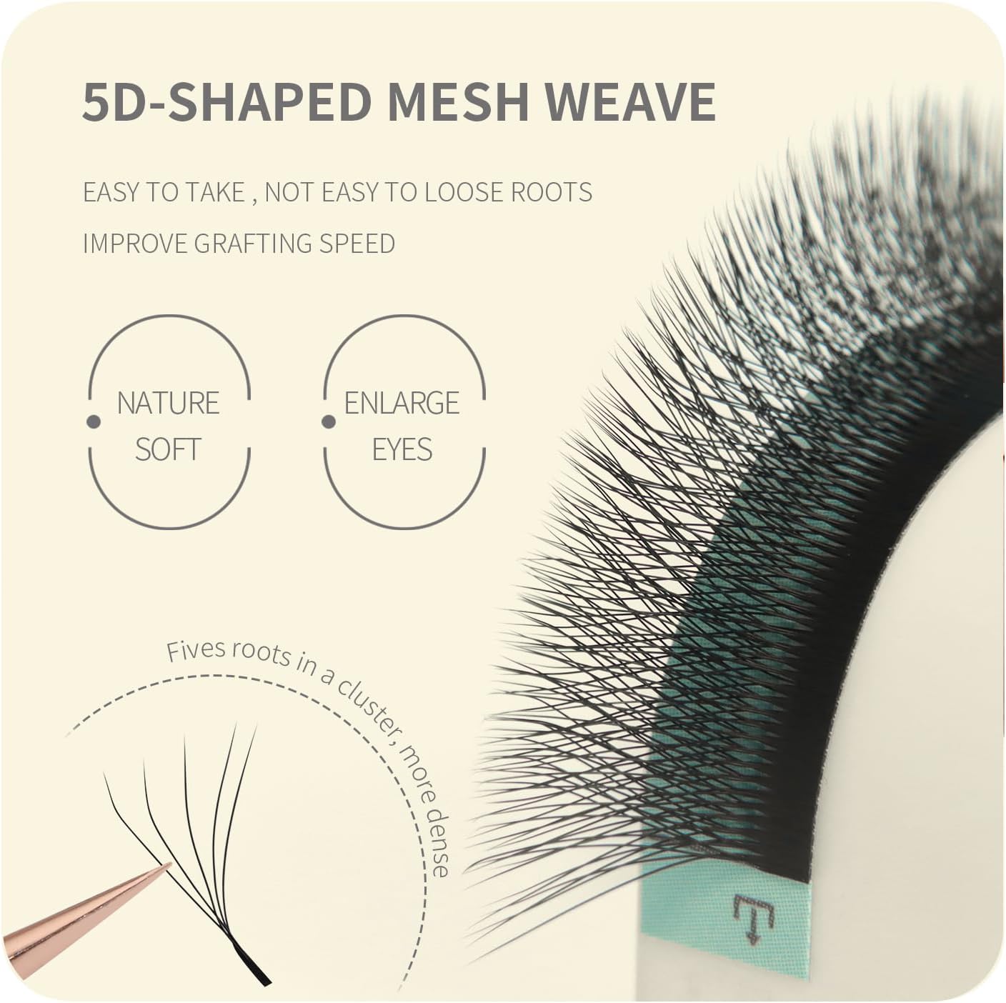High quality materials can maintain the C/D/L/LU curl of eyelashes for more than two years.Prefabricated 5D fan-shaped eyelashes, with very standard thickness and curl.