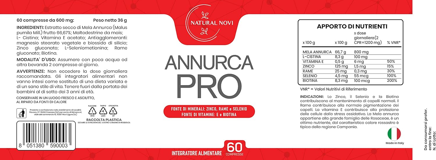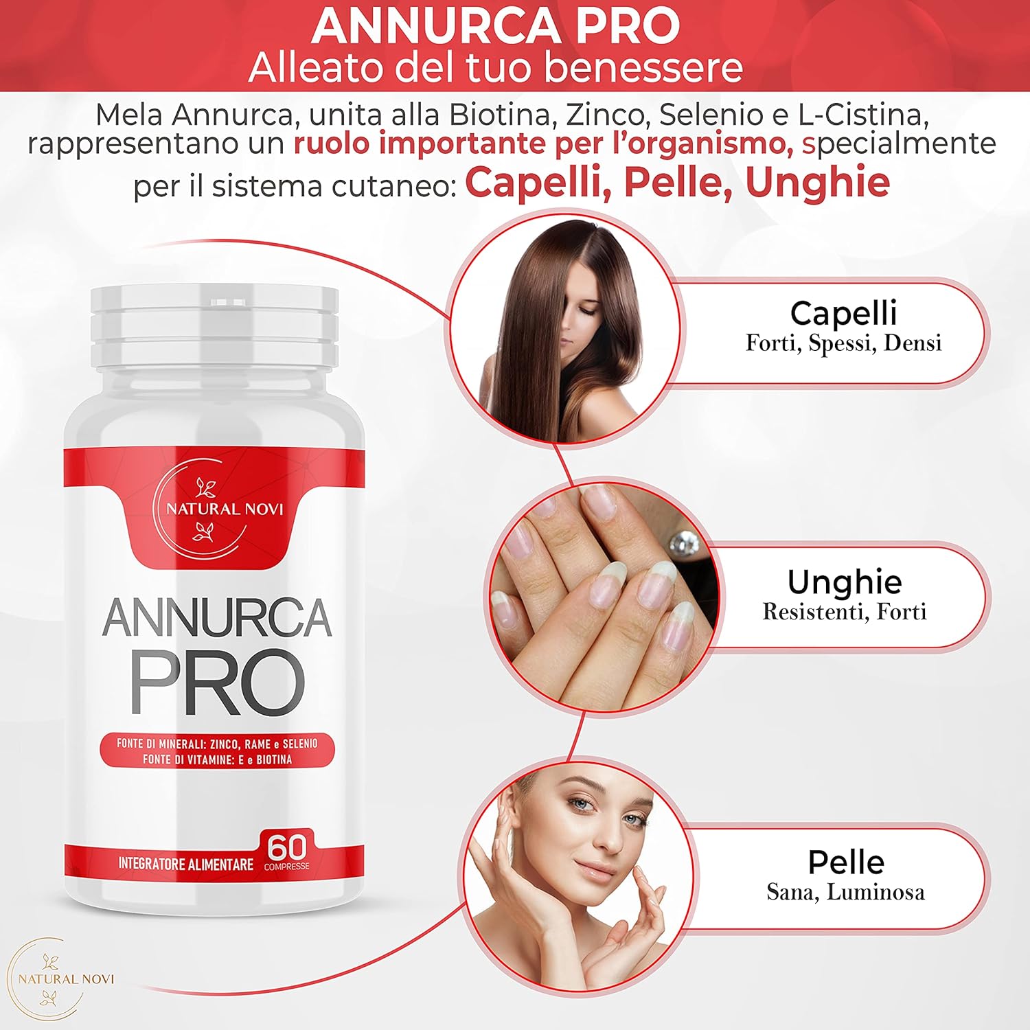 Annurca Pro Appel is een voedingssupplement op basis van Annurche appels van de hoogste kwaliteit, gegarandeerd door Natural Novi. Melannurca Natural Novi tabletten bevatten bovendien biotine, zink, selenium en koper, L-cystine, vitamine E.