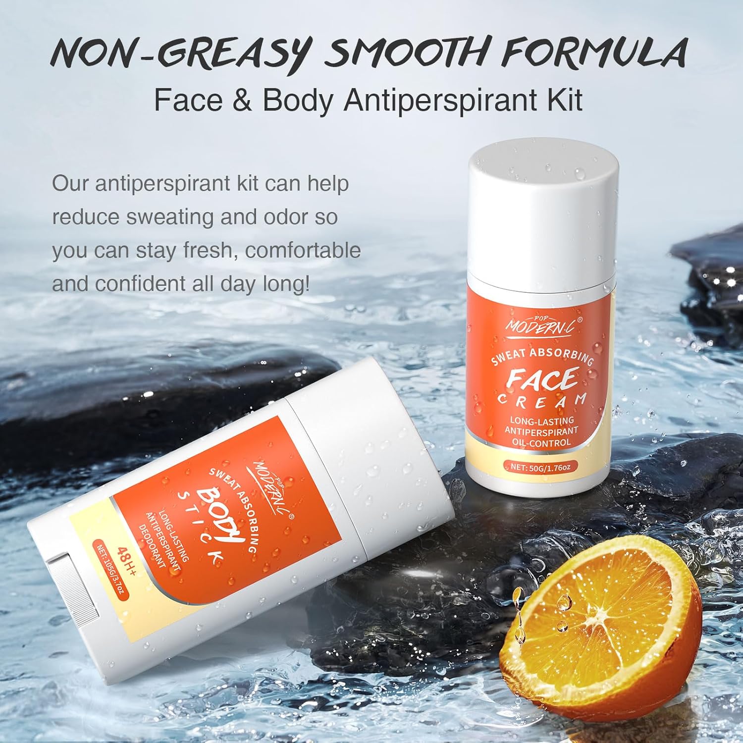 Anti-Perspirant Set for Face and Body Antiperspirant Face Cream or Oil Regulatory Primer for Face against Makeup and Deodorant Stick, Without Aluminum, Up to 48+ Hours