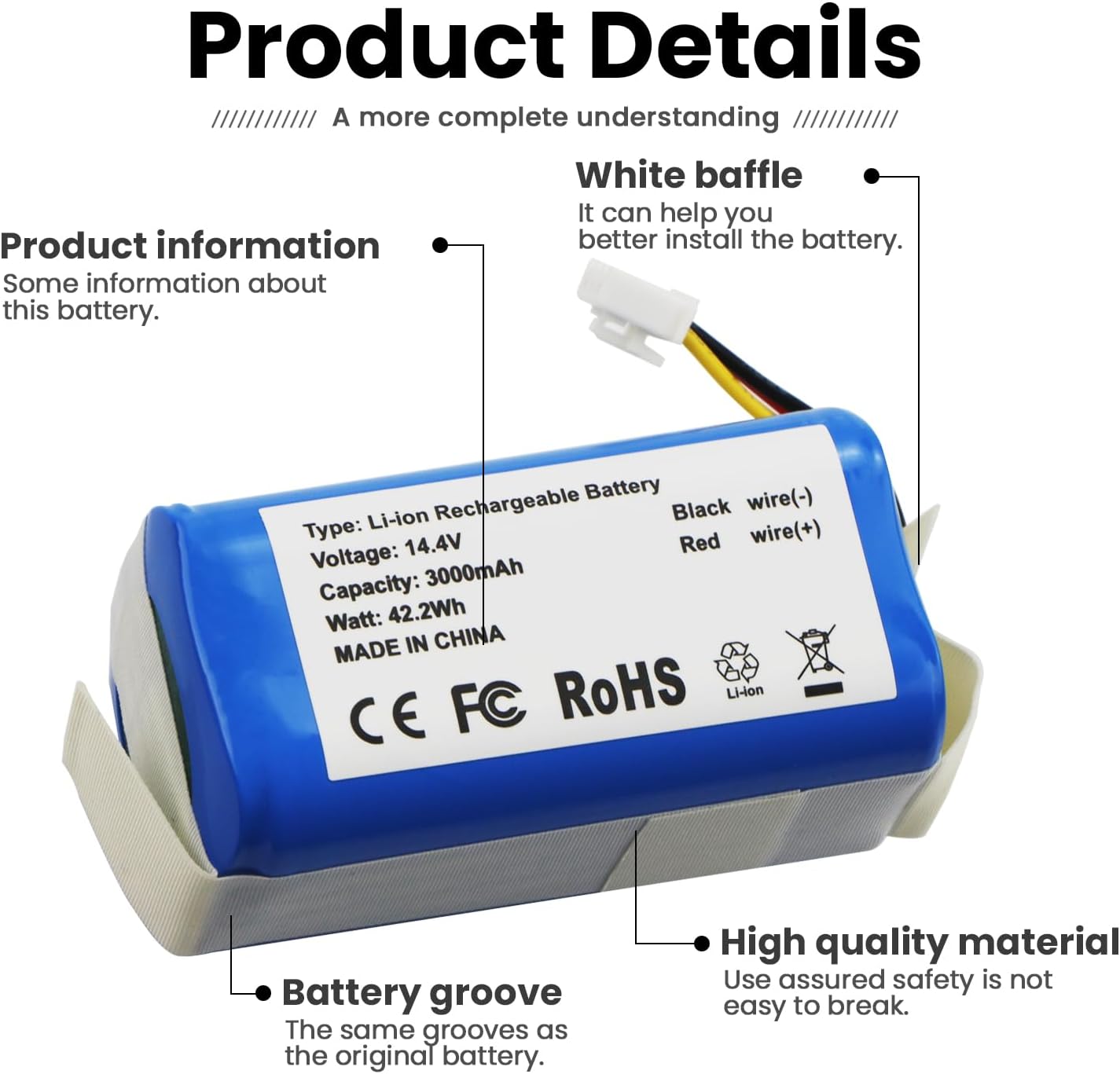 【De perfecte pasvorm voor uw stofzuiger】 Wij zijn gespecialiseerd in het leveren van hoogwaardige batterijen en klantenservice. Alle batterijcomponenten zijn vervaardigd volgens het originele 1:1 proces en voldoen aan OEM veiligheids- en prestatiespecificaties, waardoor ze perfect passen bij jouw stofzuiger.