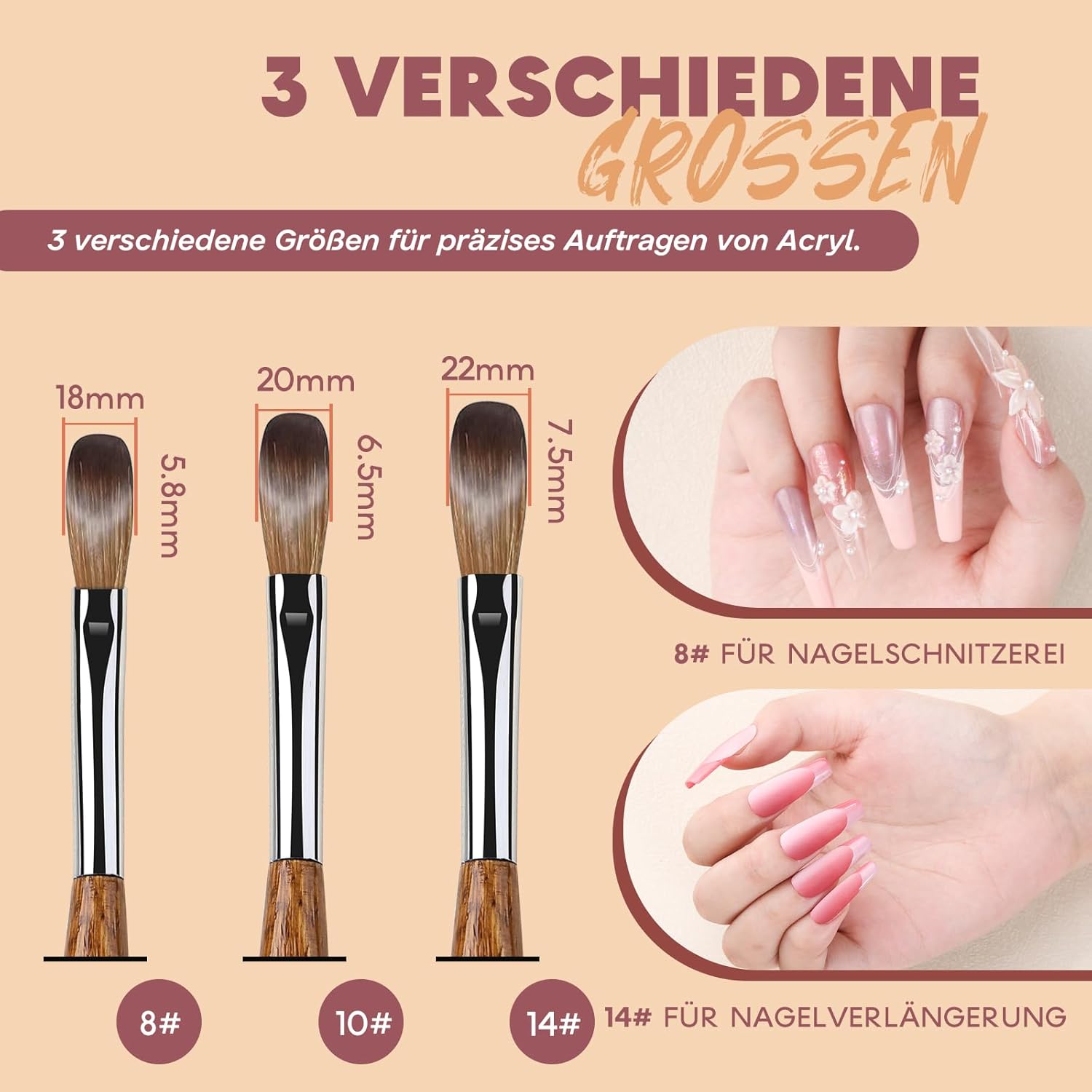 Brede toepassing en salon-grade ervaring – Aokitec nagelborstels zijn verkrijgbaar in 3 veelzijdige maten (8/12/14), ideaal voor elke acryltoepassing, inclusief nagelverlengingen en 3D-nagelsnijwerk. Geschikt voor zowel beginners als ervaren manicure.