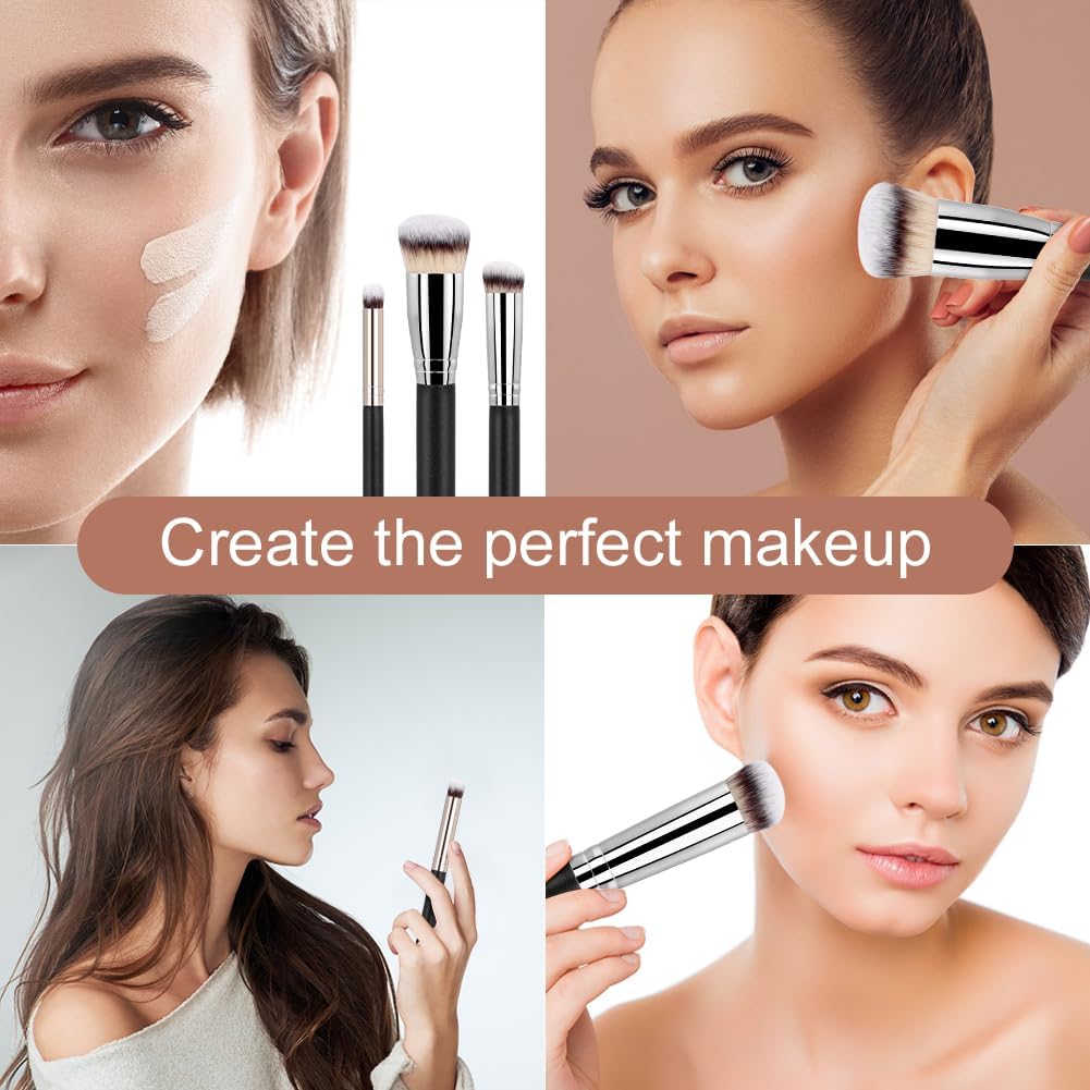 AOOWU 3 Piece Makeup Brush, Premium Foundation Brush Concealer Brush, Flat Foundation Brush for Liquid Makeup, Multifunctional Face Brush for Liquid, Cream, Blending, Polishing, Powder Cosmetics