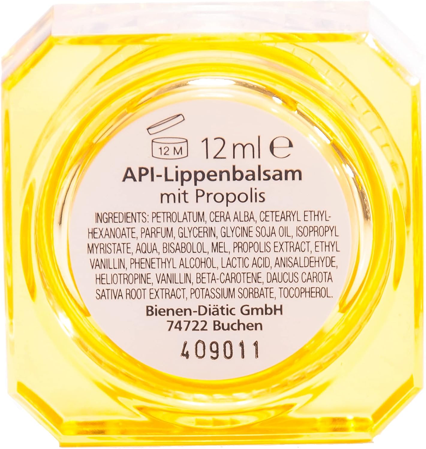 De kwalitatief hoogwaardige lippenbalsem wordt geproduceerd in Duitsland. Gun je lippen een verzorging die ze mooi soepel maakt. De meegeleverde bijenwas geeft je lippen vocht en tovert een aangenaam zacht gevoel op de lippen. De propolis sluit bovendien gebarsten lippen en helpt bij hun genezing, dat is vooral in het koude seizoen zeer aangenaam. Ingrediënten: Petrolatum, Cera Alba, Cetearyl Ethylhexanoaat, Parfum, Glycerine, Glycine Sojaolie, Isopropyl Myristaat, Aqua, Bisabolol, Mel, Propolis Extract, Fenethyl alcohol, Lactic Acid, Beta-Carotene, Daucus Carota Sativa Root Extract, Anisaldehyde, vanilline, Potic. tassium sorb ate, tocoferol