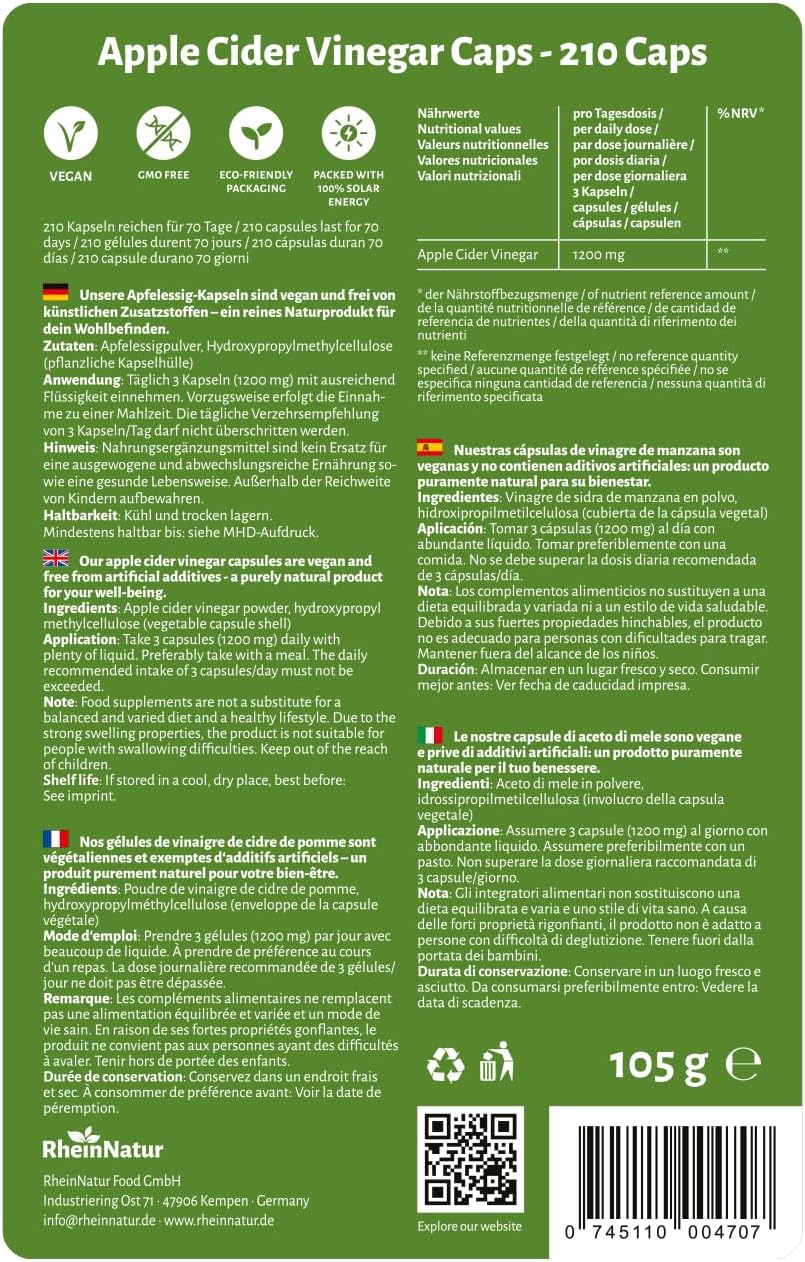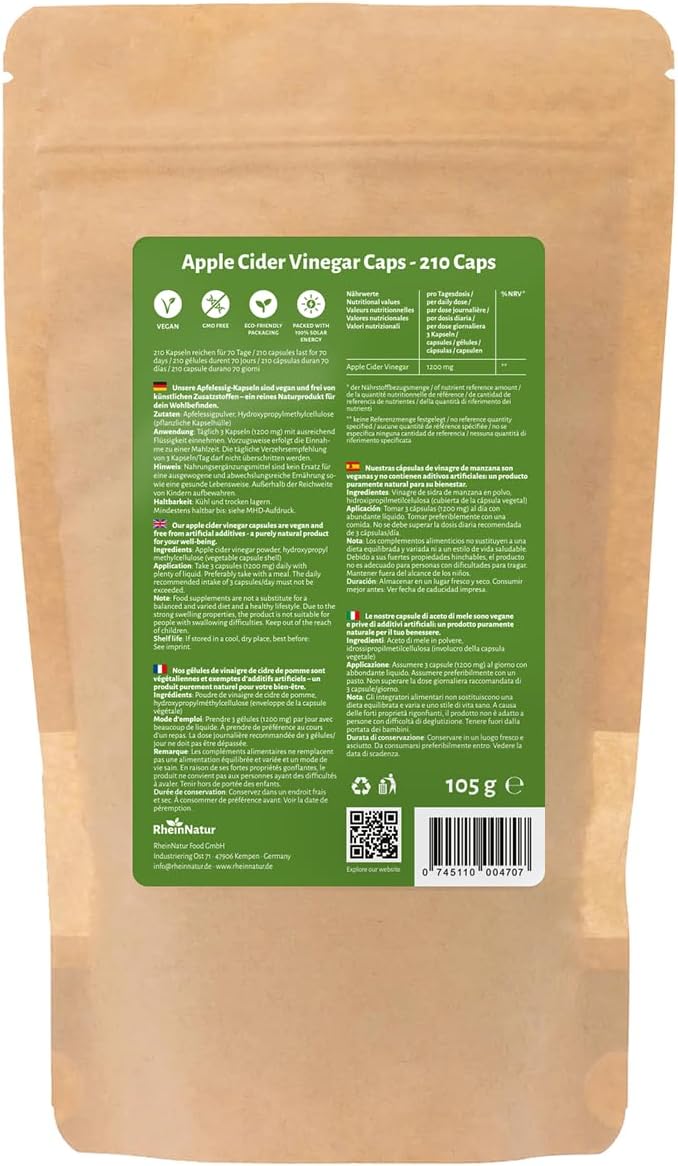 De RheinNatur appelciderazijn capsules bieden de voordelen van appelciderazijn in een praktische en smaakneutrale vorm. Elke capsule bevat hoogwaardig appelciderazijnpoeder in een plantaardige hoes, ideaal voor iedereen die van de positieve effecten van appelciderazijn wil genieten, zonder de intense smaak van de vloeibare vorm. Appelazijn staat bekend om zijn veelzijdige positieve eigenschappen.