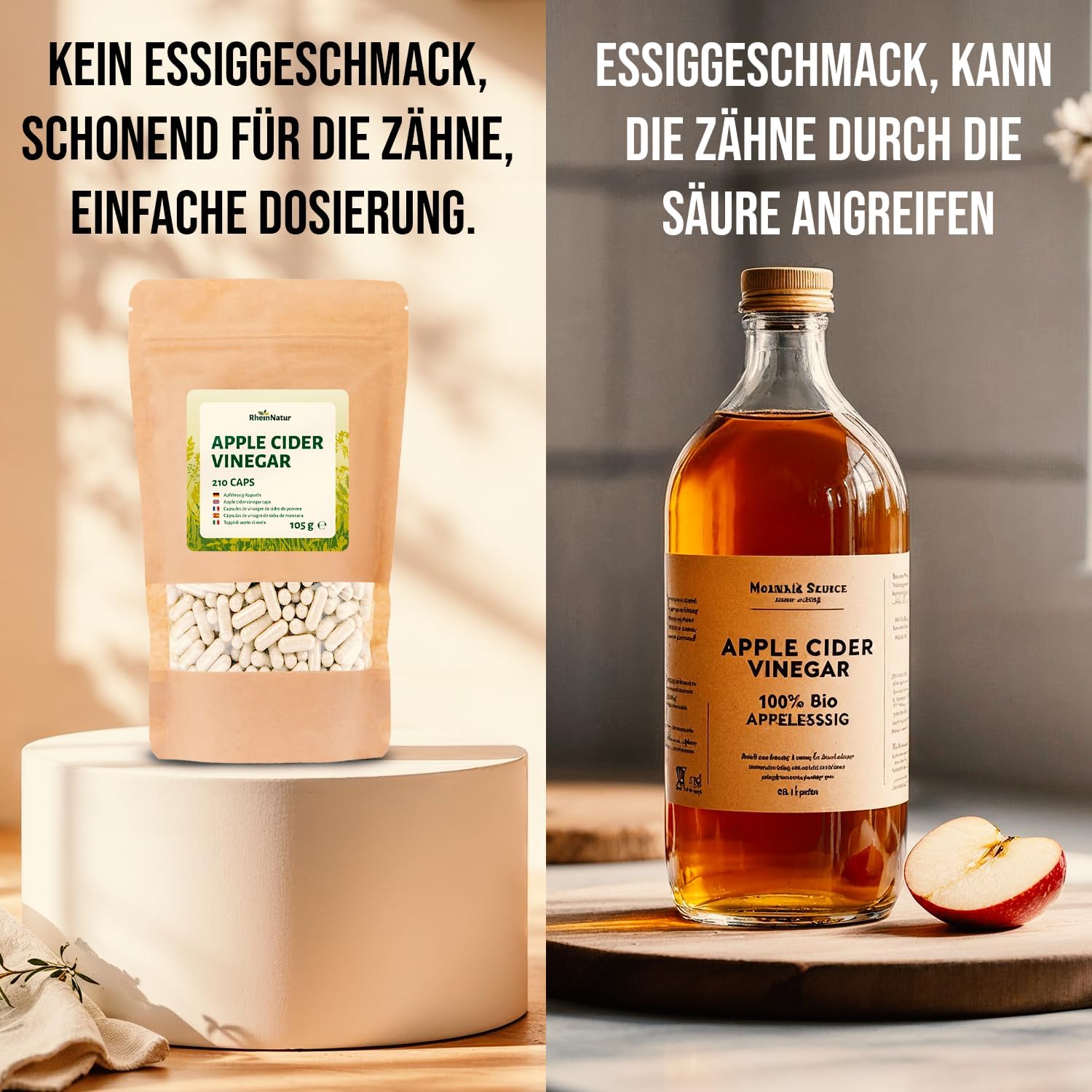 habe mir diese Apfelessigkapseln zum testen bestellt.Bisher habe ich regelmässig die Apple Vinegar Brausetabletten zu mir genommen welche von der Tagesdosierung mit 3 Brausetabletten 690mg Apfelessigextract beinhalten.Die Apfelessigkapseln von RheinNatur bieten mit 3 Kapseln pro Tag 1200mg Apfelessigpulver, ca. 500mg mehr, was mir sehr gefällt.Die Vorzüge von Apfelessig sind bekannt, in unserem Fall ist es die positive Wirkung auf den Blutzucker und den Stoffwechsel.Apfelessig einfach so trinken ist gewöhnungsbedürftig und kostet Überwindung, deshalb finde ich den Apfelessig in Kapseln eine sehr gute Alternative.Von der Wirkung des Apfelessigs auf die Gesundheit sind wir seit Jahren überzeugt und möchten diese Nahrungsergänzung auch nicht mehr missen.Fazit, die RheinNatur Apfelessig-Kapseln sind qualitativ gut, leicht einzunehmen, gut dosiert und der Preis ist sehr, sehr gut für die Menge mit 210 Kapseln für 70 Tage.Gerne empfehlen wir die Kapseln guten Gewissens weiter.Danke an den Hersteller für dieses sehr gute Testprodukt.