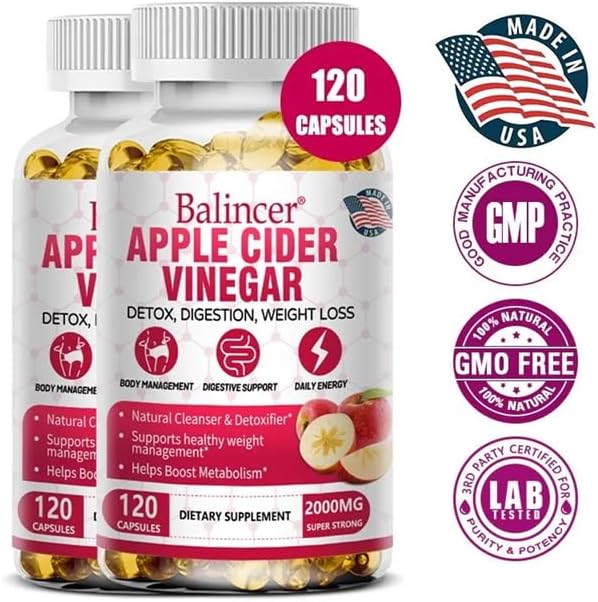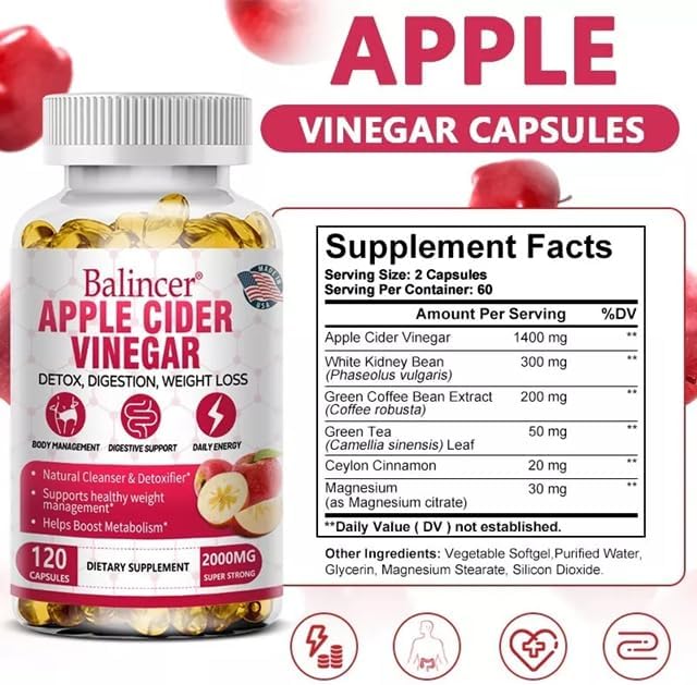 Appelciderazijn 2000 mg (120 capsules) met groene thee, magnesium, gewichtsverlies, dieet, vetverbrander