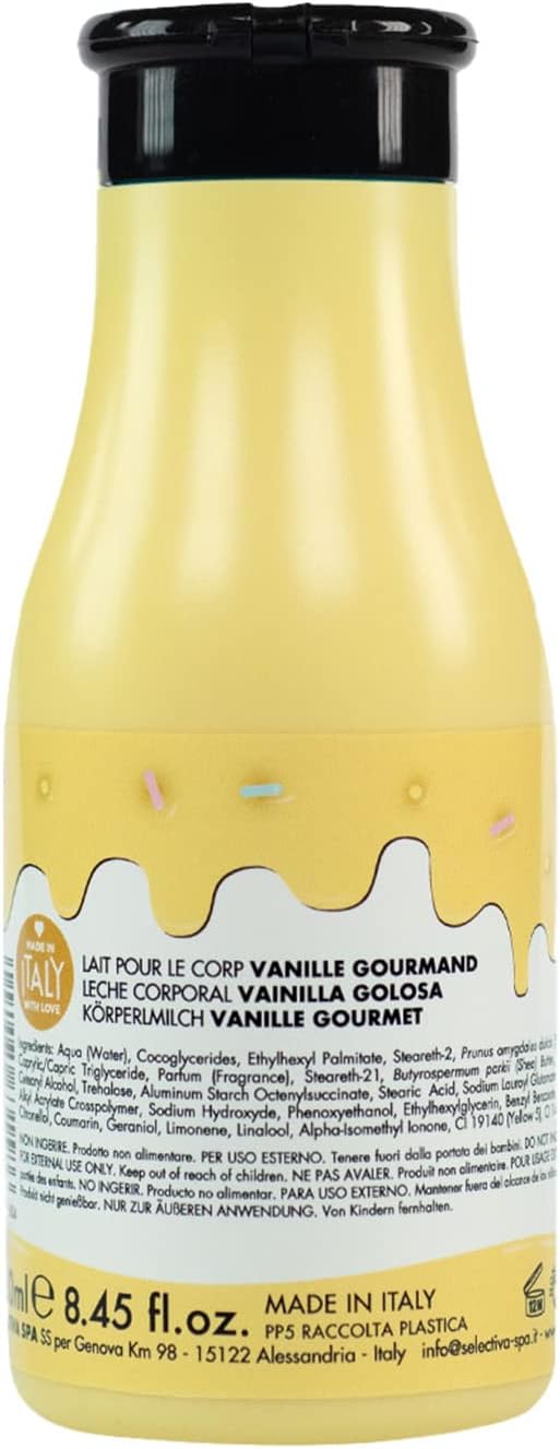 Beschrijving „” Aquolina Vaniglia Gourmand Bodylotion (Vanilla Gourmand).” Zoet, delicaat en omhullend, voor een fluweelzachte huid – 250 ml VOEDEND – Rijke, voedende formule die de huid fluweelzacht maakt en verrijkt is met amandelolie, vitamine E en sheaboter, voor een zachte en zachte huid. GEUR – Elegante, gewilde geur met de suikerzoete tonen van vanille die je huid langdurig laten ruiken. GEBRUIKSWIJZE – Aanbrengen op de aangetaste plekken en met ronddraaiende en zachte bewegingen inmasseren tot het product volledig is opgenomen. Cadeau-idee — cadeau voor iedereen die van zelfzorg houdt en van de schoonheidsroutine een intens moment of een traktatie wil maken. ONTDEK DE VOLLEDIGE LIJN – Ontdek alle geuren van Aquolina bodylotion, voor een zachte en langdurige huid. Passie, aandacht voor detail en klantenservice zijn de waarden die ons altijd hebben geleid bij het maken van onze producten. Het resultaat is een merk dat iedereen nu kent en dat van de schoonheidsroutine een uniek spel heeft gemaakt, waarbij geur, kleur, zoetheid en de wens om te eten niet mogen ontbreken. Alle producten van Selectiva zijn gemaakt in Italië”
