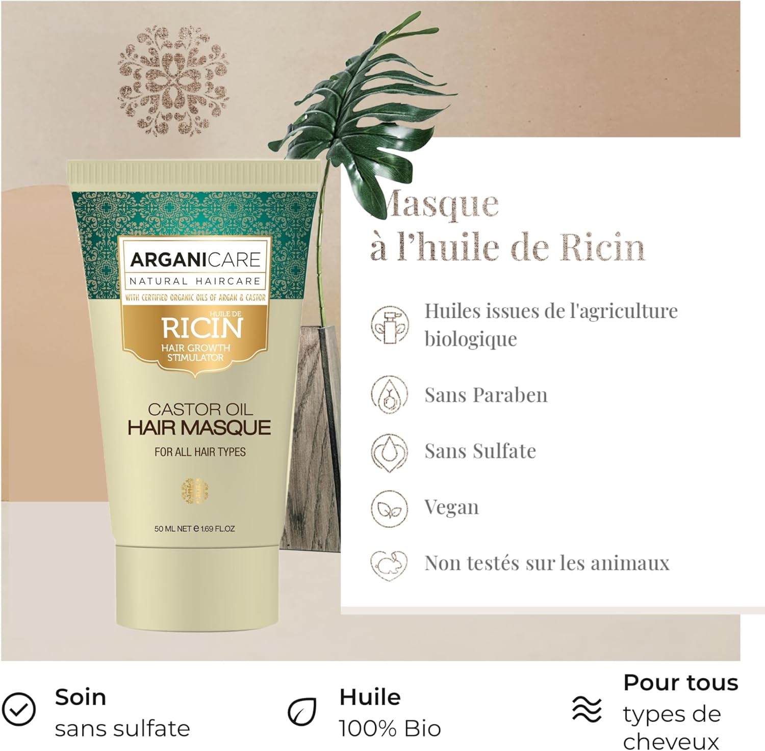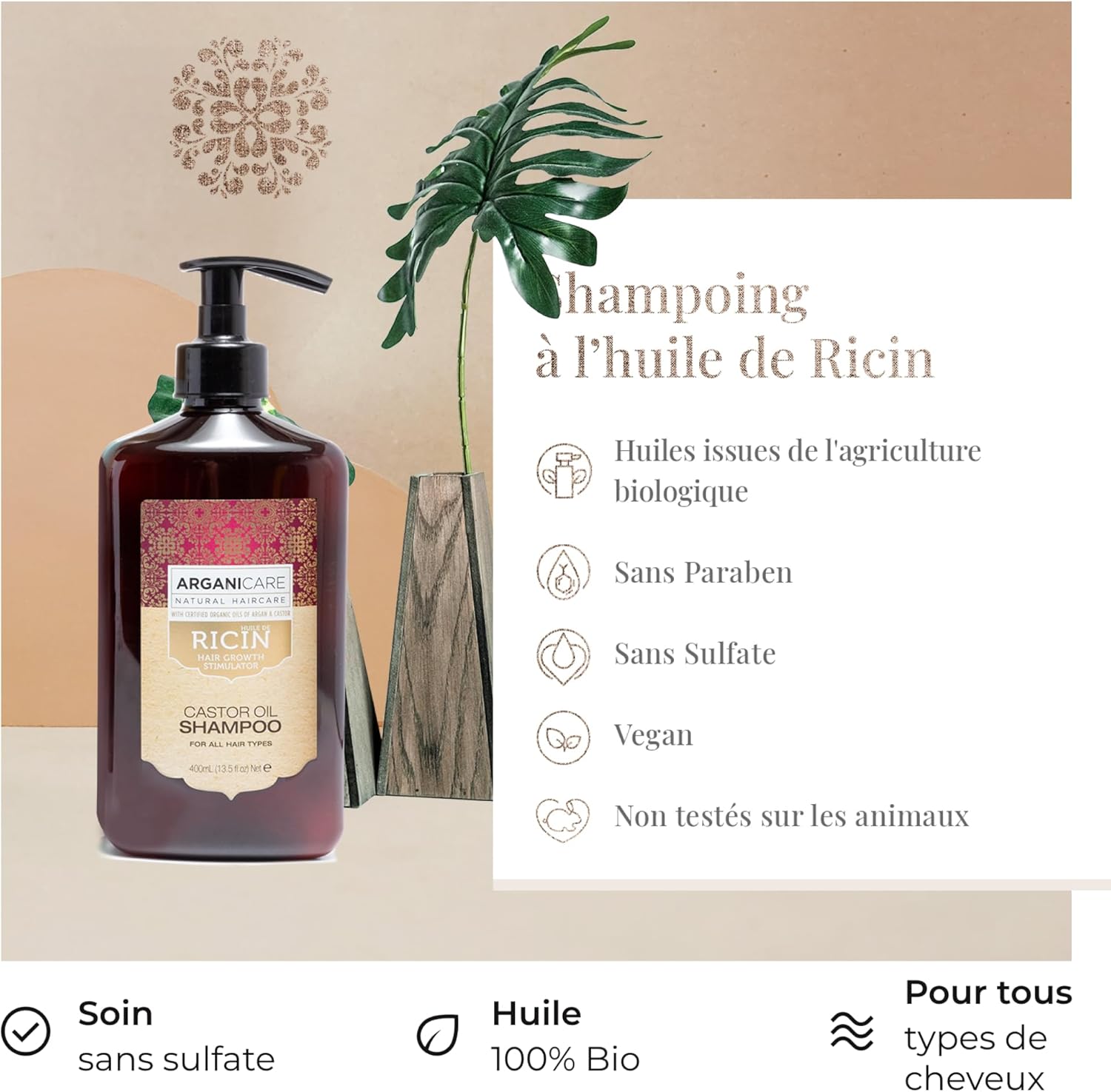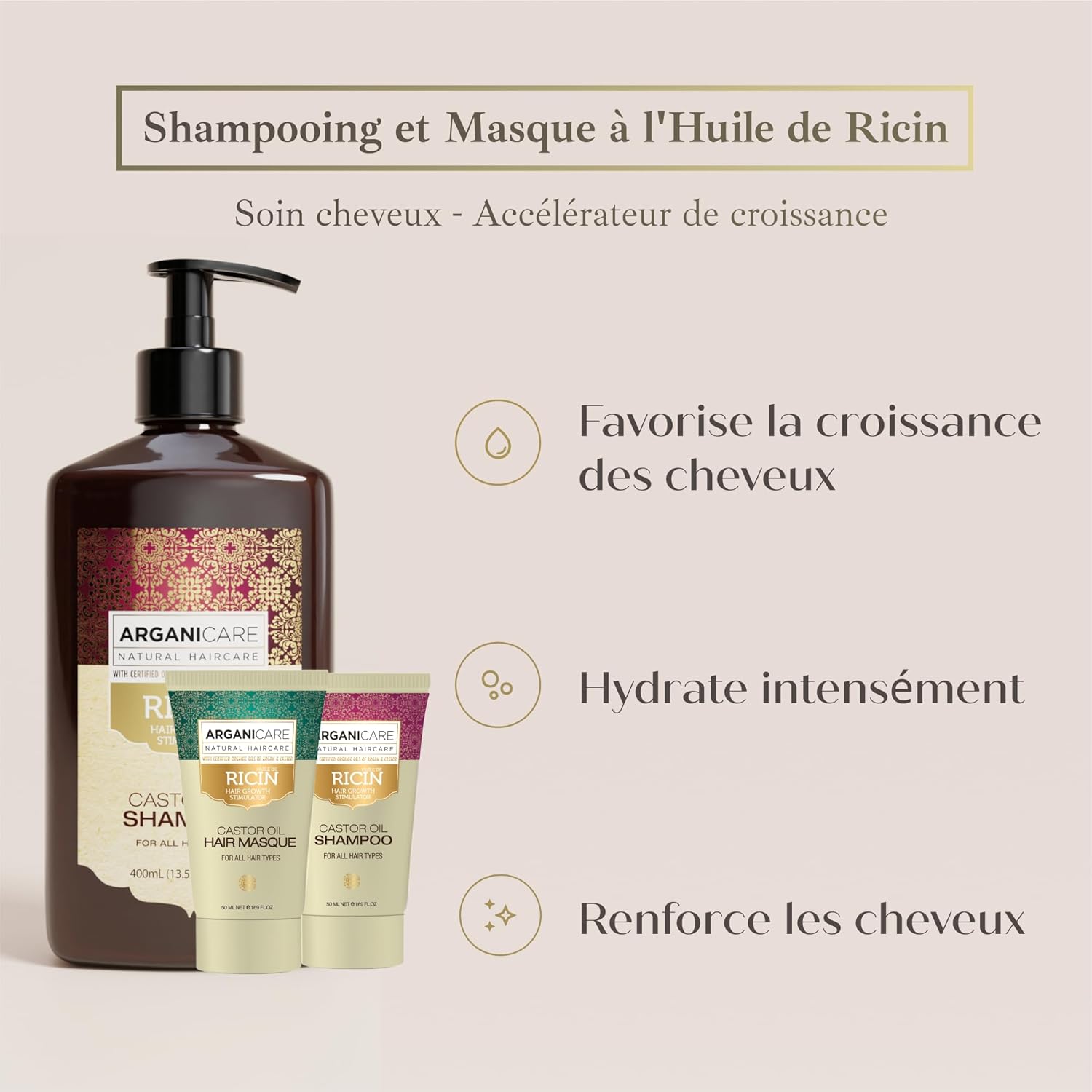 ARGANICARE | Ricinusserie | Groeiversneller Shampoo 400 ml + shampoo 50 ml + masker 50 ml | Met biologische ricinusolie | Haarverzorging | Versterkt | Hydrateert | Alle haartypes