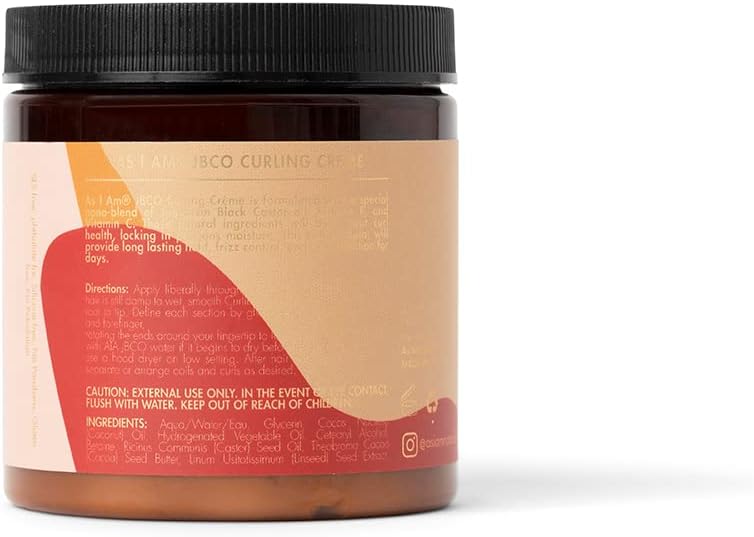 As I am JBCO curling Cream is formulated with fiber reinforcing ceramides and castor oil. Nature’s best moisturizers and curl boosters will retain precious moisture.