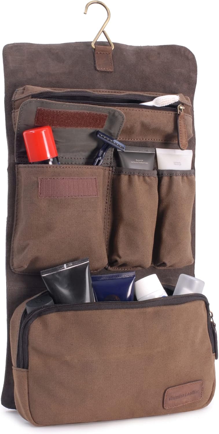 Overall I’m really happy with this product. I tour around a LOT and finding a durable wash/shave bag can be problematic. This one seems as durable as it is stylish, with a brass hook that shouldn’t rust from exposure to wet or damp. All in all it’s pretty well thought out. There’s a detachable zip bag made from heavy canvass material with lots of room, and the leather section containing pockets for razors or aftershave or the like, and a cool tubular zip pocket at the top perfect for a toothbrush or a razor.I’d have preferred if the fastening buckles had been permenantly attached to the bag. As it is they fasten at one end by the buckle and at the other, press-stud for quick release. However they have a tendency to slip loose at the buckle end and unnoticed can be easily lost. One of mine got left behind in a hotel bathroom in Italy. Fortunately the company that sell it have an excellent customer relations and support and have arranged a replacement despite normally only doing that for damaged components. So all in all the company and the product get top marks. Now that I know that can happen I’ll be extra vigilant. Despite that this is the best product of its kind I’ve owned and would firmly recommend it to the regular and occasional traveler alike. It looks great, functions well and should last a long time.