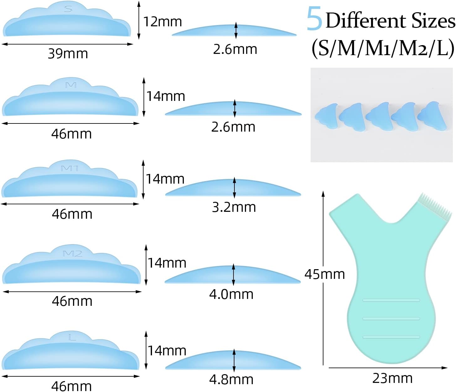 5 Different Sizes: The silicone eyelash perming pads has 5 sizes, S, M, M1, M2, and L. You can choose the right size according to your needs, which is suitable for most eye shapes. The Y-shape eyelash brush is approx. 4.5 x 2.3 cm, which makes the perming process easier and cleaner.