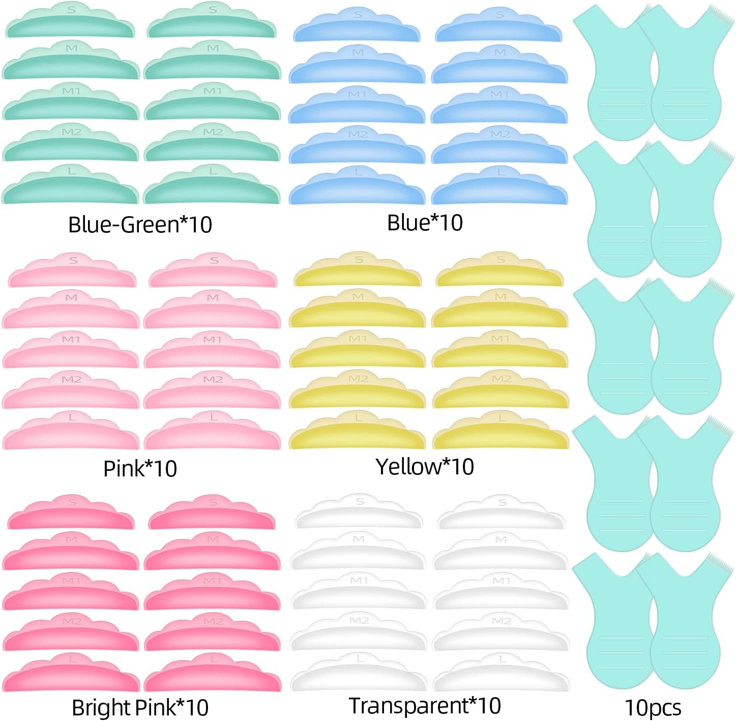 Package Includes: 60pcs eyelash shield pads(10pcs transparent, 10pcs pink, 10pcs blue, 10pcs green, 10pcs bright pink 10pcs and 10pcs yellow) and 10pcs green Y-shaped brushes can meet your needs well.
