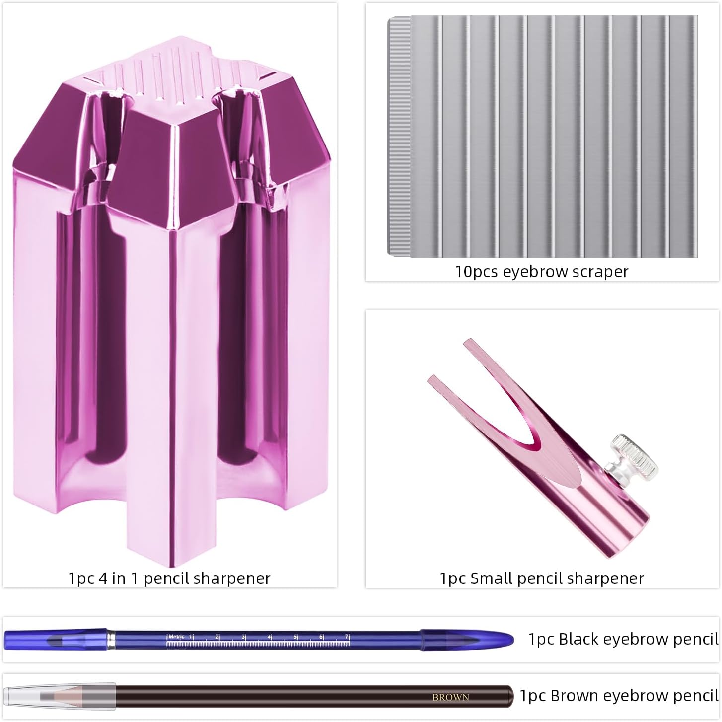 ★【Package included】1pc 1cm Brown eyebrow pencil,1pc 0.8cm Multi functional black eyebrow pencil,1pc 1cm rose gold pencil sharpener, 0.8cm rose gold pencil sharpener and 10pcs Professional Beauty Eyebrow Trimmer.