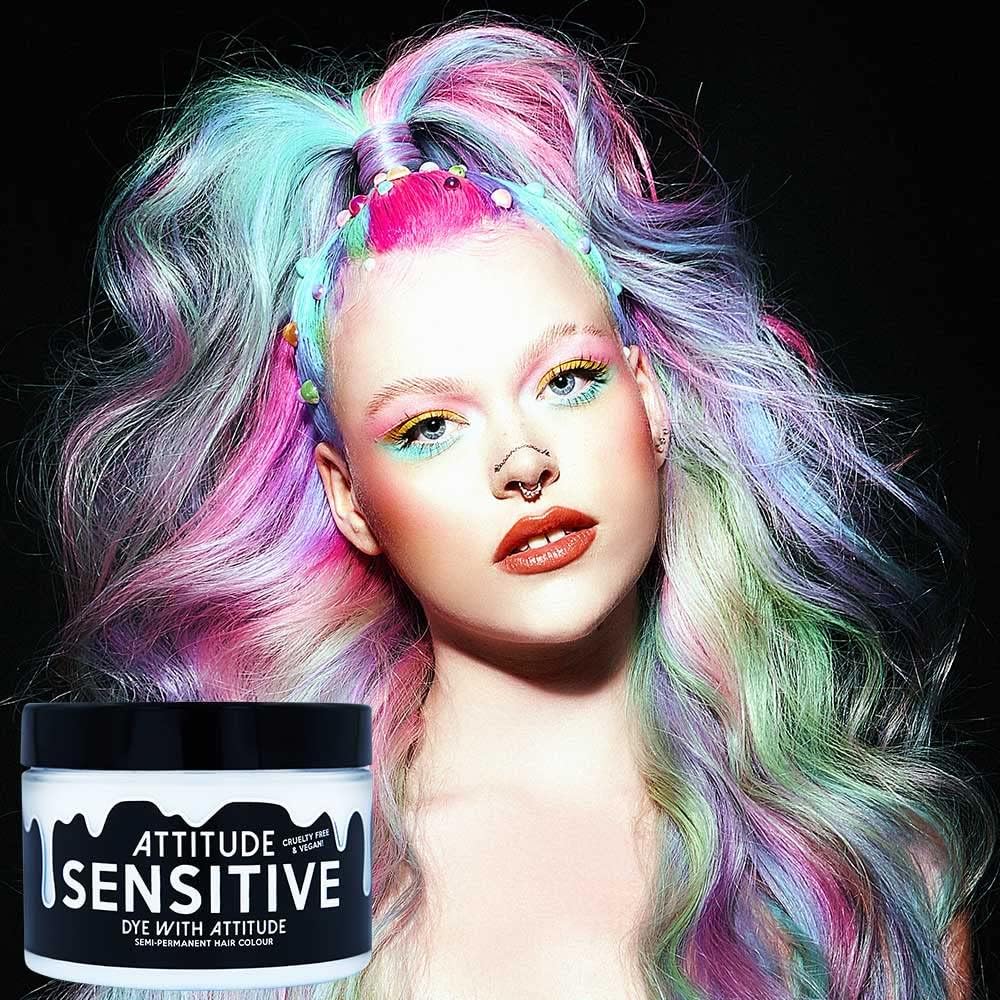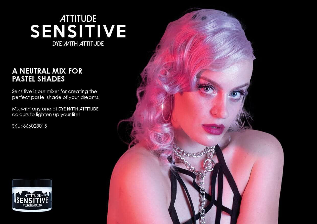 Sensitive is the perfect mixer to create the pastel shades of your dreams! Sensitive is NOT a white hair dye, toner or bleach product – it is a blending product to turn our bright colors into pastel shades yourself. Keep in mind that the lighter you make the color of the hair dye, the lighter your pre-bleached hair must be to make any color appear. Light colors do not appear on a dark canvas.