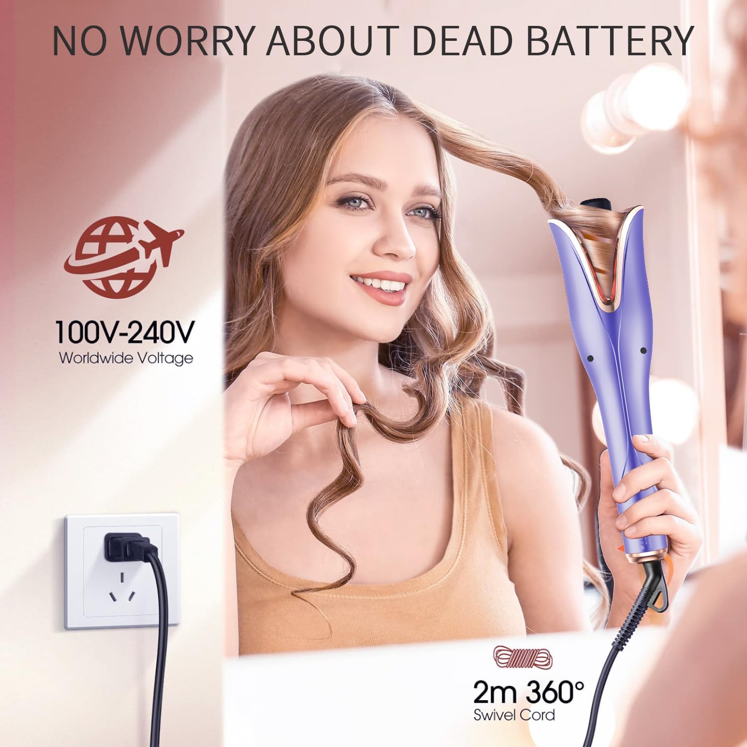 Anti-verbranding & Anti-klitten & Anti-Stuck De automatische haarkrultang is ingebouwd in een slimme magnetische inductiemotor, die het werk stopt om te voorkomen dat het haar in de war raakt en wordt getrokken als krullen te veel haar of verkeerd werken. Maak gewoon het haar los en start de machine opnieuw op om te gebruiken. Dubbellaagse hittebeschermende hoes is ontworpen om verbranding op je vingers of gezicht te voorkomen. Dubbele spanning (100-240V) is handig voor reizen en wordt niet beperkt door regio.