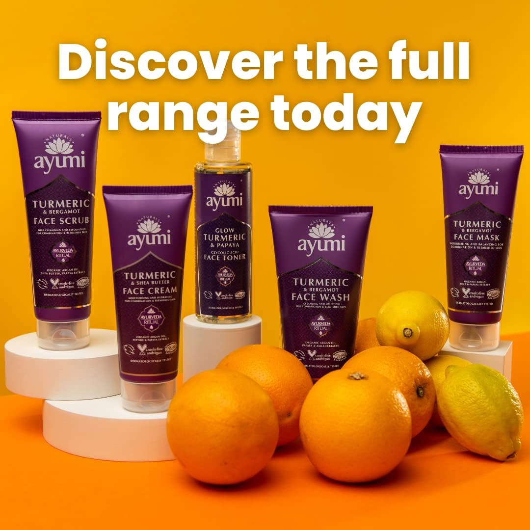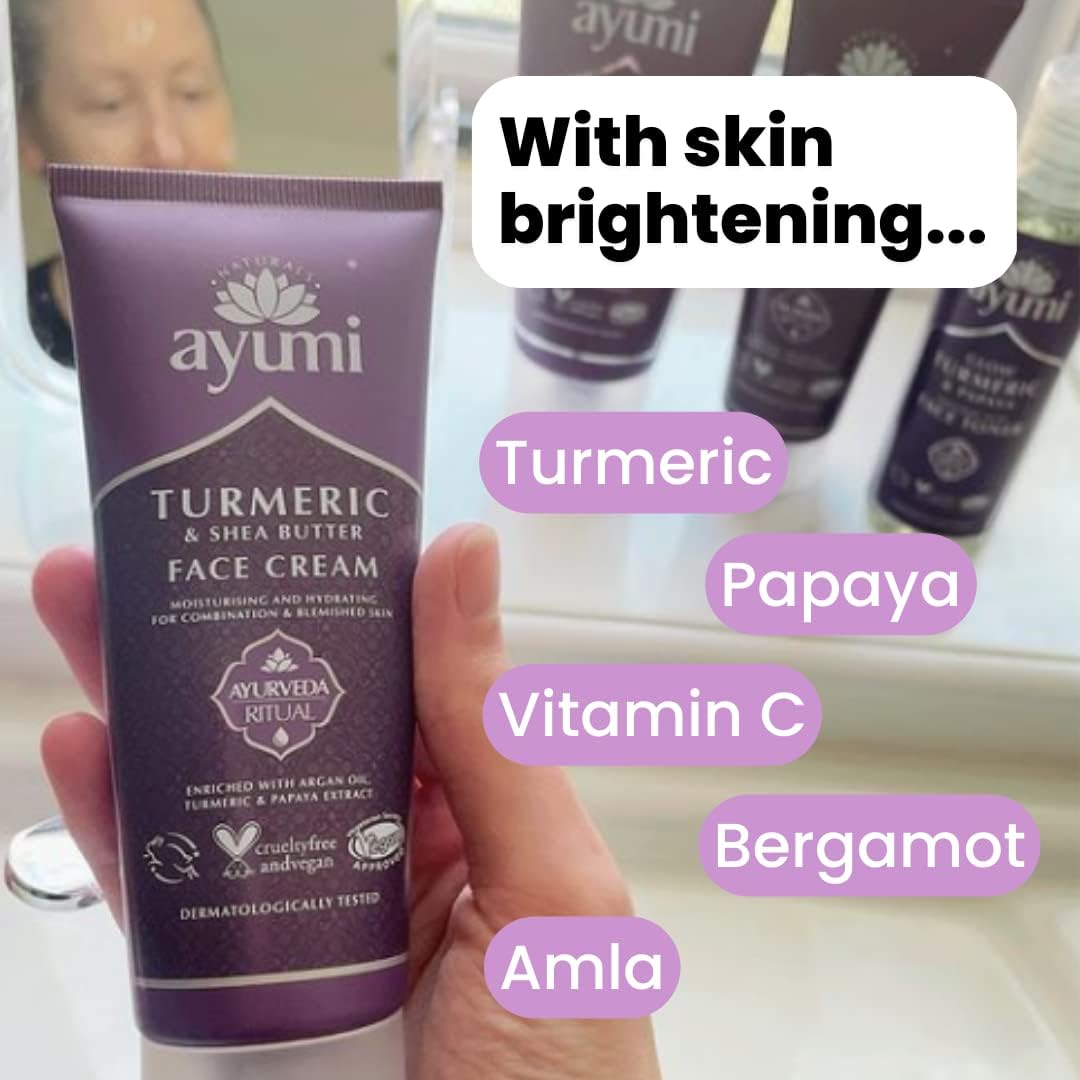 Ayumi Turmeric & Bergamot Face Cream. Vegan, Cruelty-Free, Dermatologically-Tested, 2 x 100ml